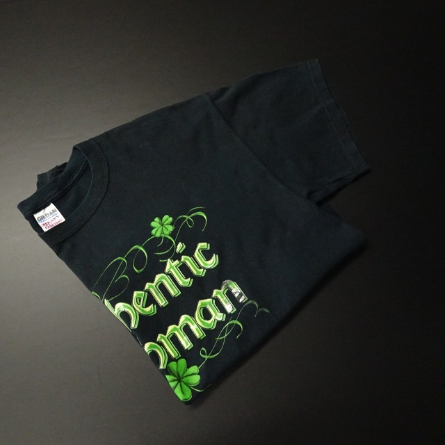 00s- GILDAN ギルダン 半袖Tシャツ アイリッシュマン クローバー プリント 短丈 00年代~ ブラック