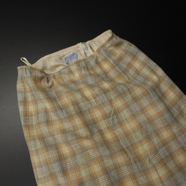 70s- USA製 PENDLETON ペンドルトン ウールスカート ロング チェック柄 タロンジッパー 70年代~ ベージュ