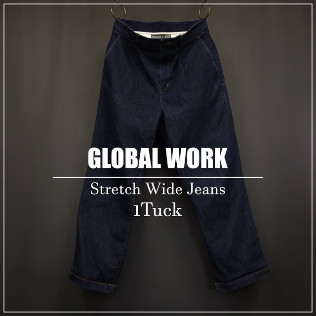 人気☆GLOBAL WORK グローバルワーク 1タック ワイドジーンズ ストレッチ SIZE M 濃紺 グッドデザイン