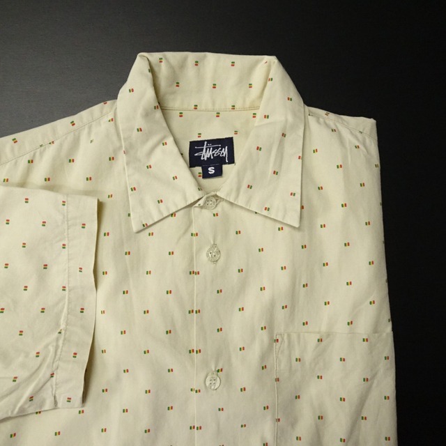 90s- USA製 Stussy ステューシー 半袖シャツ ラスタ柄 オールド 90年代~ ベージュ系