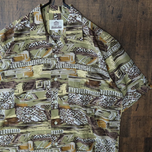 90s Vintage US古着☆BEDFORD ベッドフォード 半袖 総柄 シャツ レトロ オールド SIZE M イエロー 90's 90年代