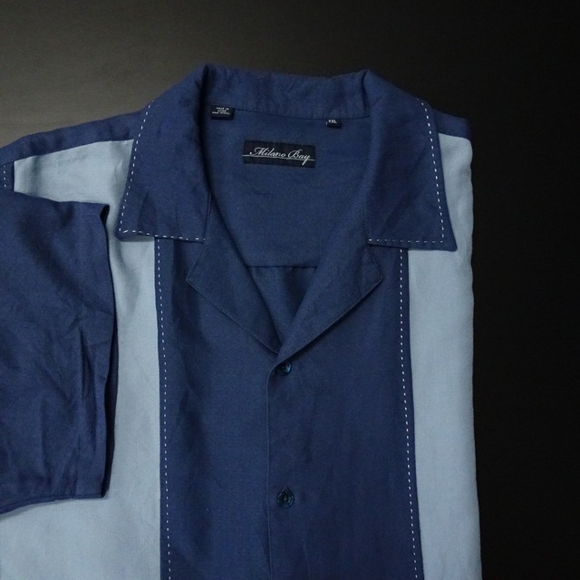 レーヨン混の開襟シャツ。切り替えデザインの定番アイテムです。