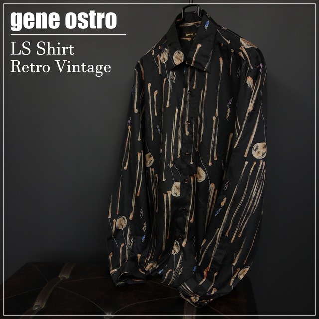 90s Vintage レトロ古着☆gene ostro 長袖プリントシャツ 総柄 風船 SIZE M ブラック 90's 90年代 グッドデザイン