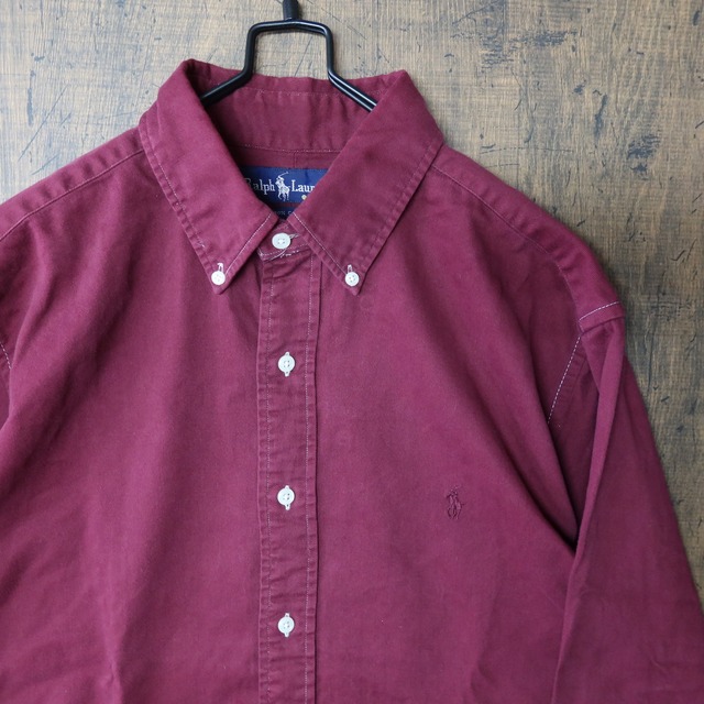 90s Vintage US古着☆Ralph Lauren ラルフローレン 長袖 シャツ 単色 SIZE L エンジ 90's 90年代