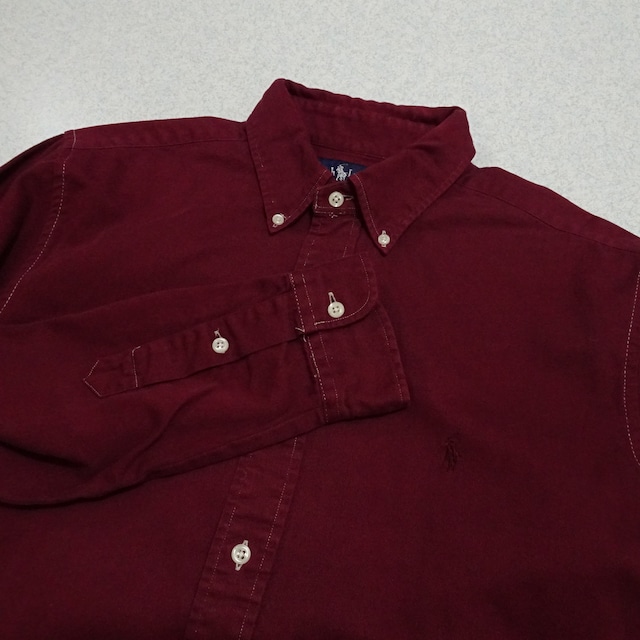 90s- USA製 Ralph Lauren 長袖シャツ ツイル 単色 90年代~ ボルドー系
