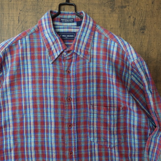 90s Vintage US古着☆VAN HEUSEN ヴァンヒューセン 長袖 チェックシャツ SIZE L レッド 90's 90年代 グッドデザイン