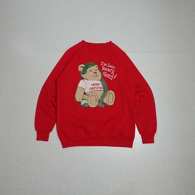 90s USA製 Hanes ヘインズ 長袖スウェット クリスマス ベア 私はいい子にしてました! 激かわ 90年代 レッド系