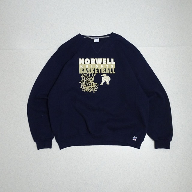 00s RUSSELL ラッセル 長袖スウェット ノーウェル・ナイツ バスケットボール ラバープリント 00年代~ ネイビー