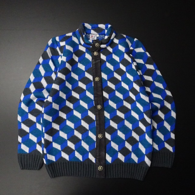 90s スペイン製 LOREAN ロリアン 長袖カーディガン キューブ柄 希少