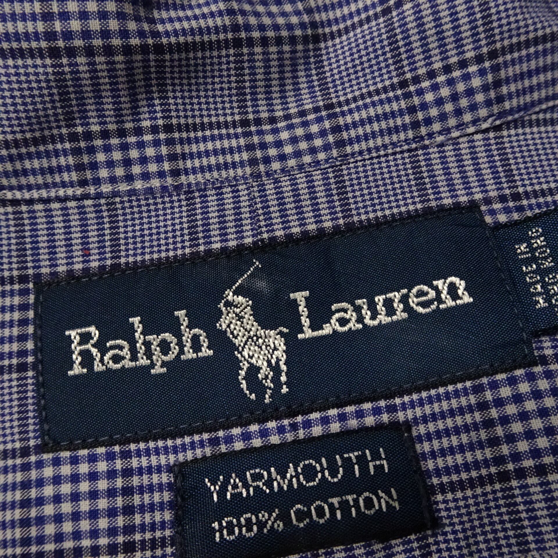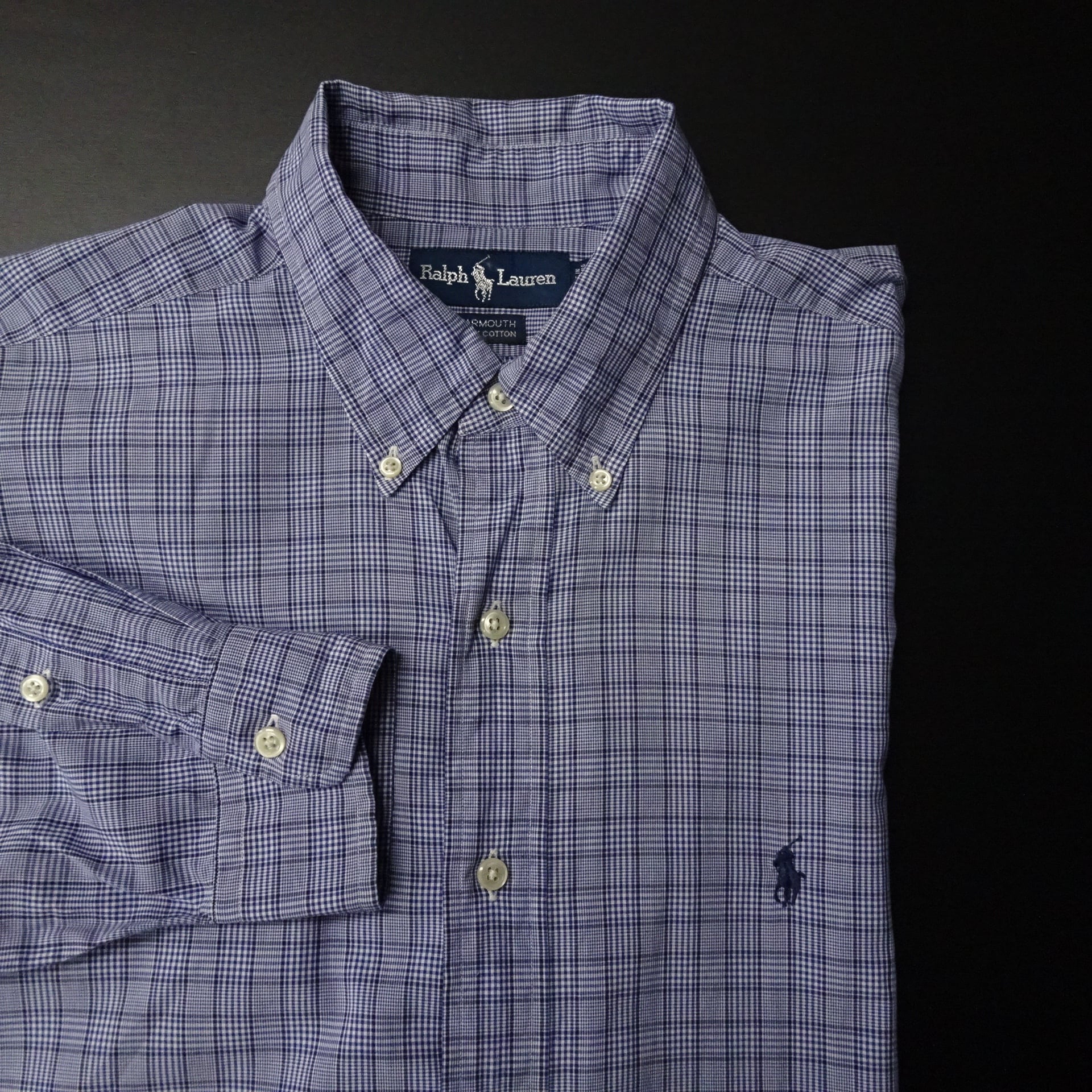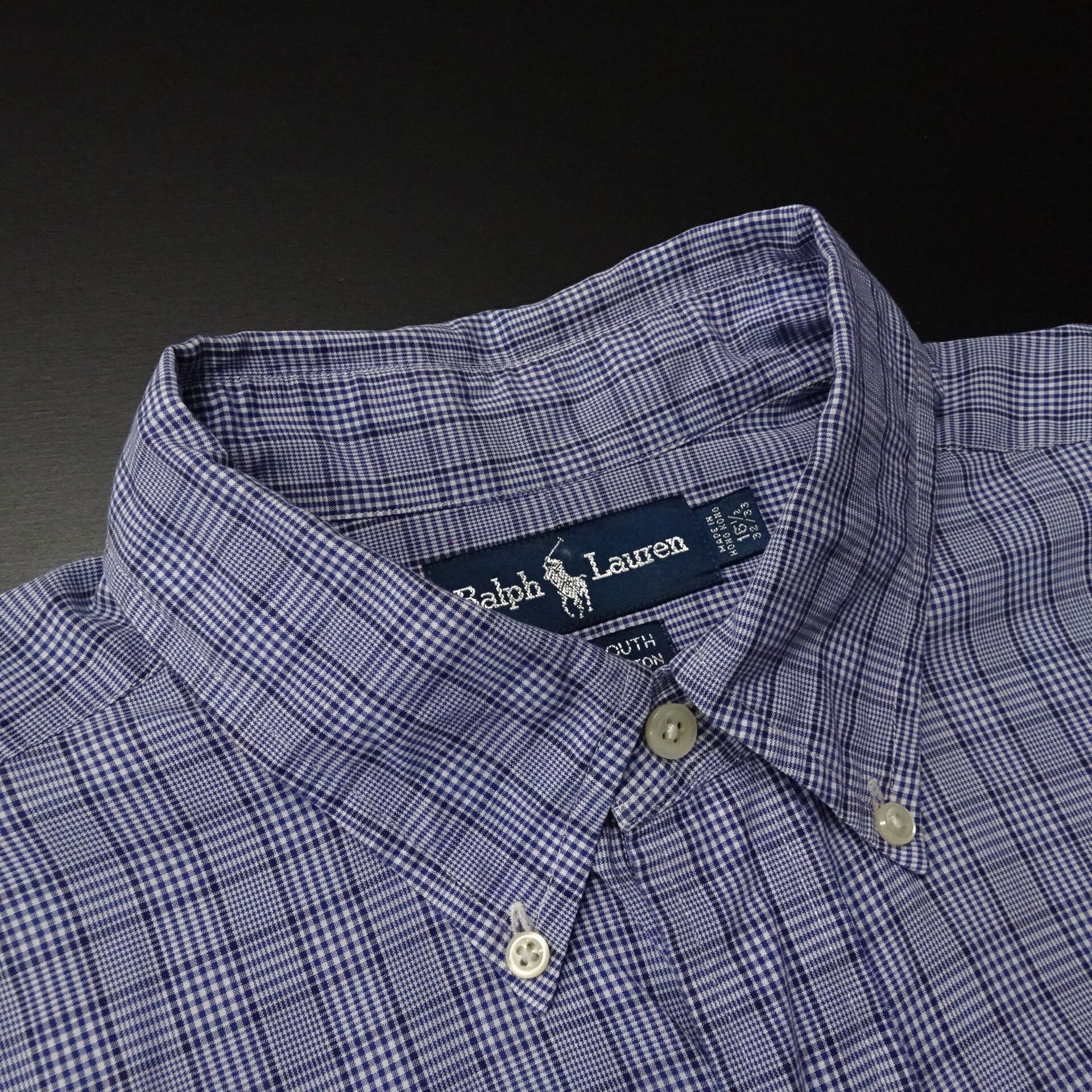 90s 香港製 Ralph Lauren ラルフローレン 長袖シャツ チェック ボタンダウン オールド 90年代 ブルー