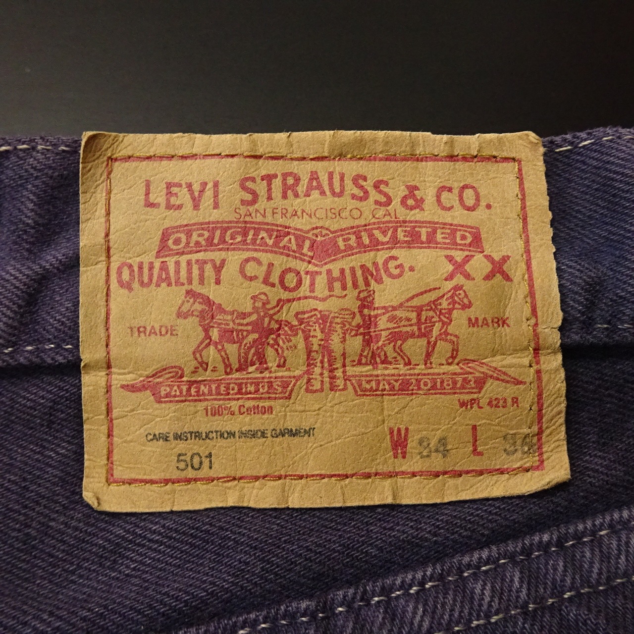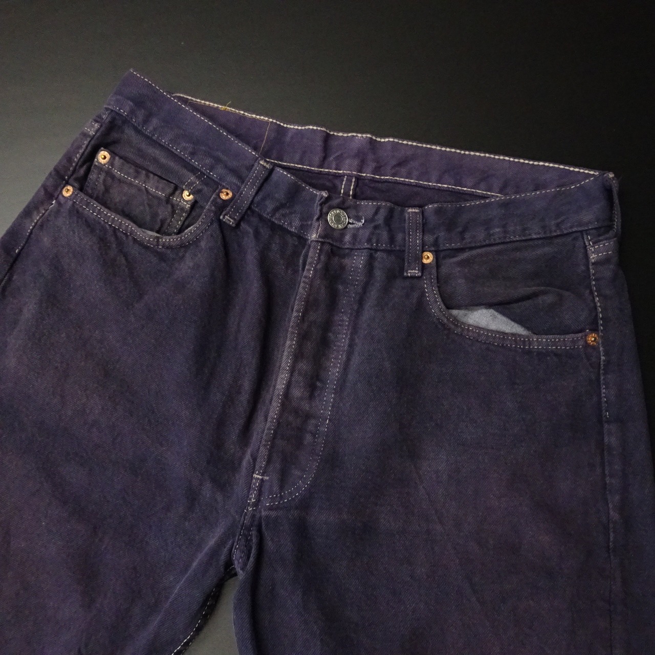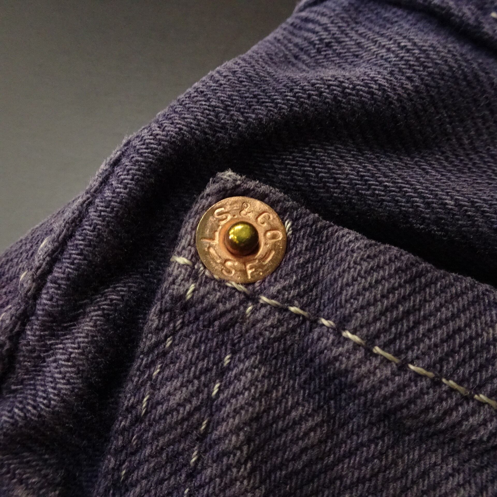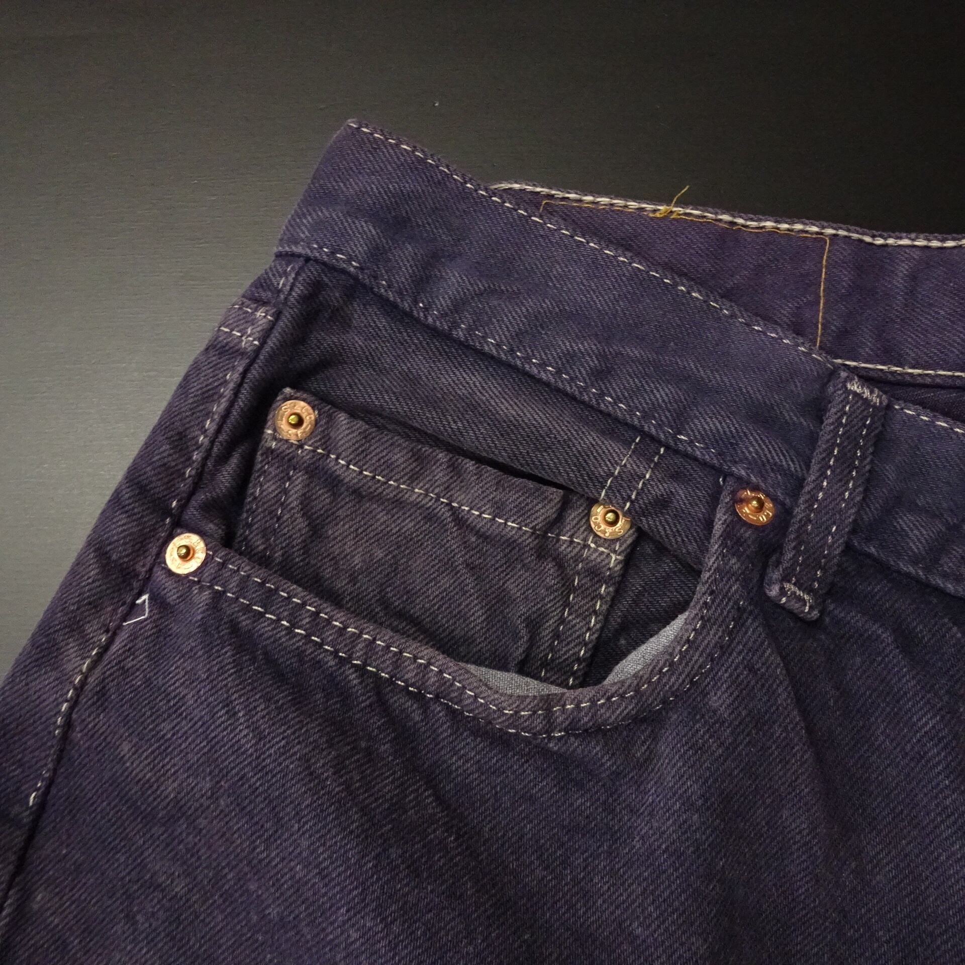 アメリカ製で、524(旧6工場)刻印のエルパソ工場カラーデニム。