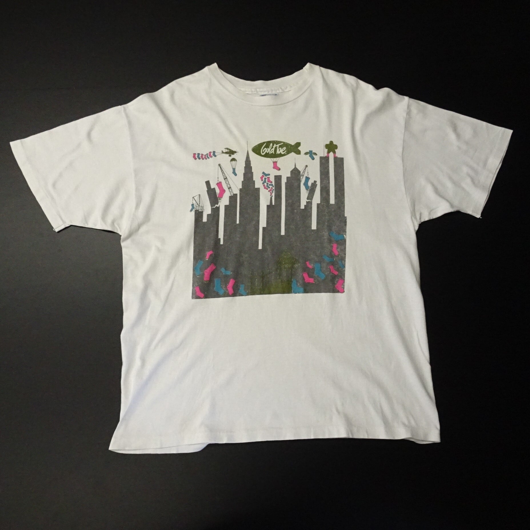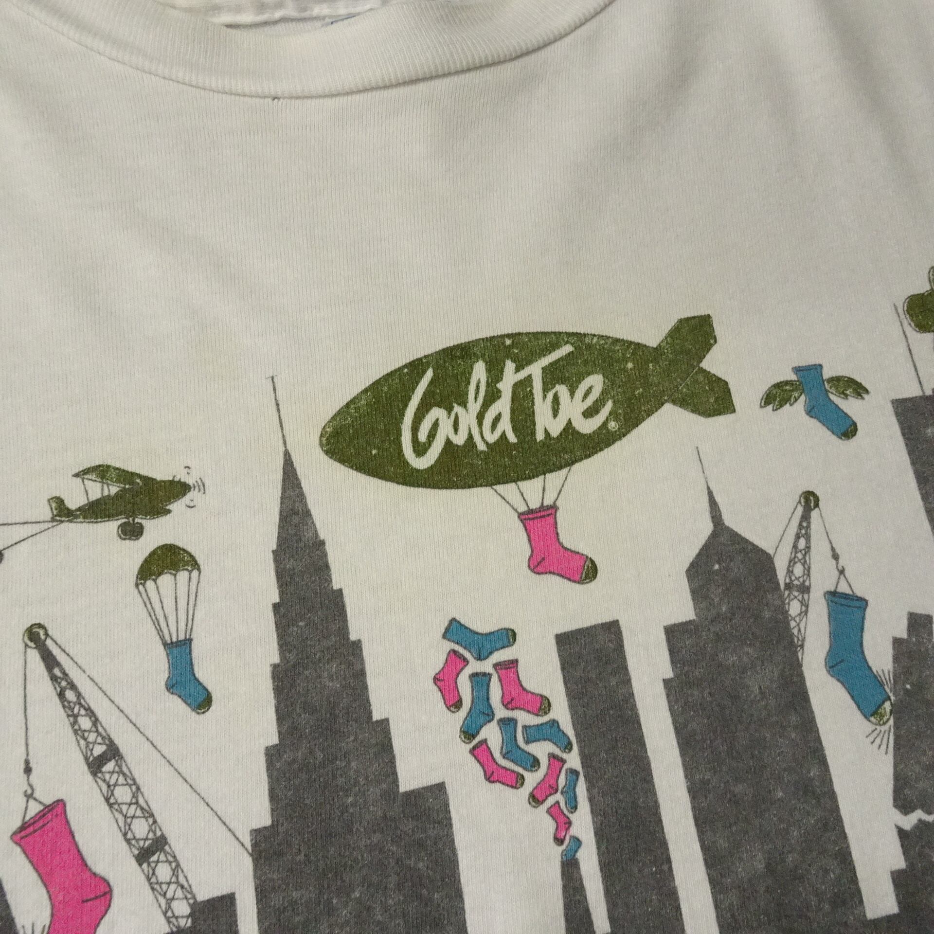 90s USA製 Hanes エインズ 半袖Tシャツ シングルステッチ プリント Gold Toe 90年代 ホワイト