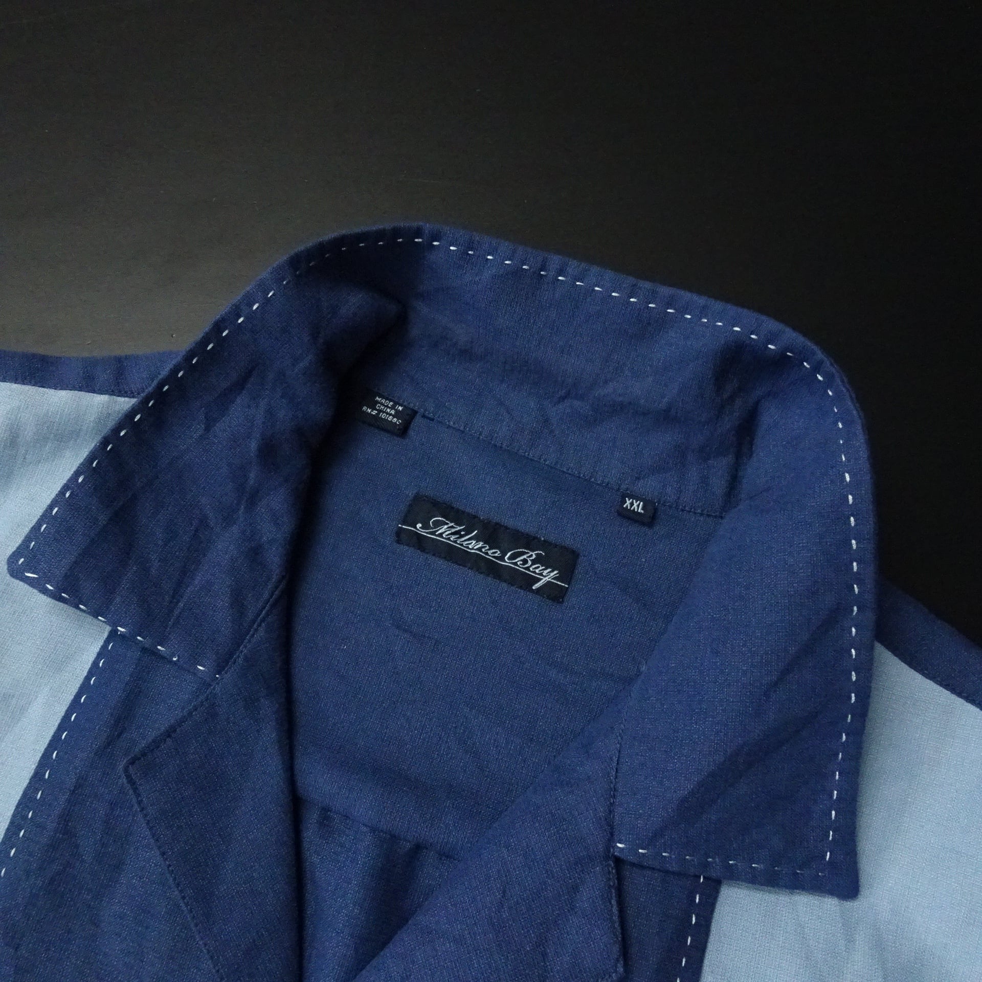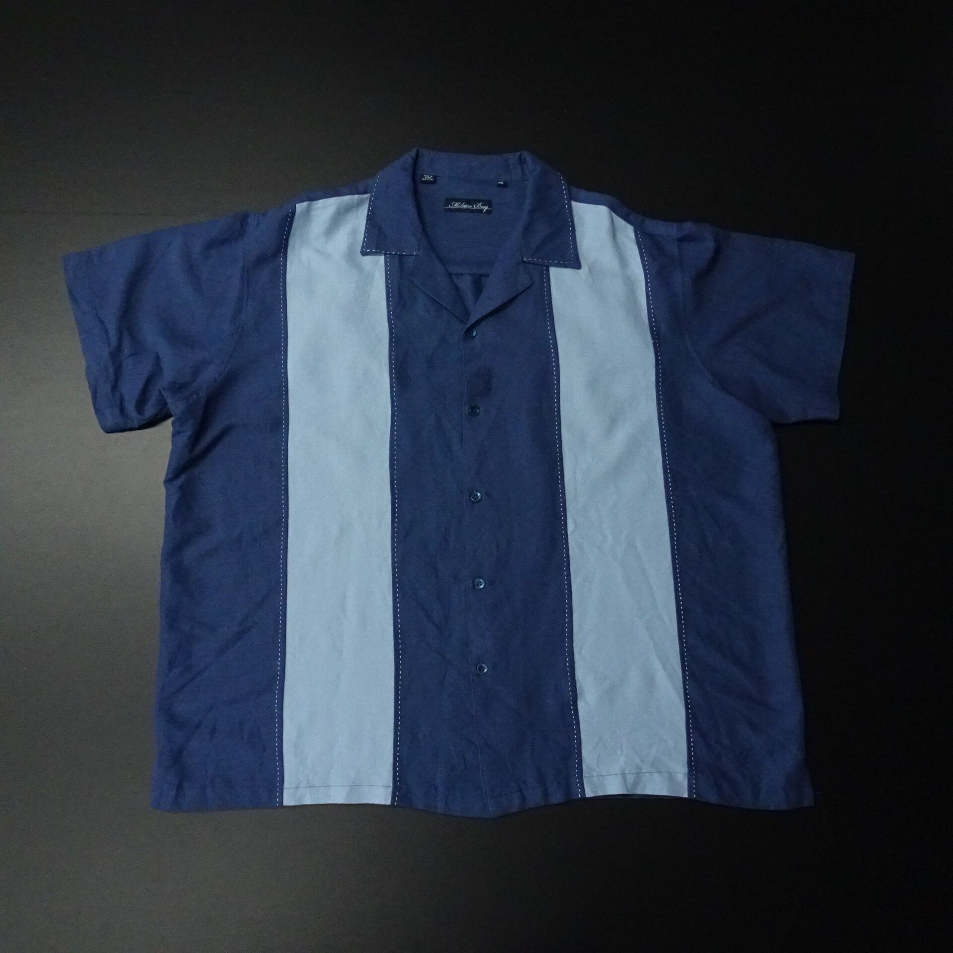 90s- Milano Bay ミラノベイ 半袖シャツ 開襟 切替 レーヨン混 ビッグサイズ 90年代~ ブルー
