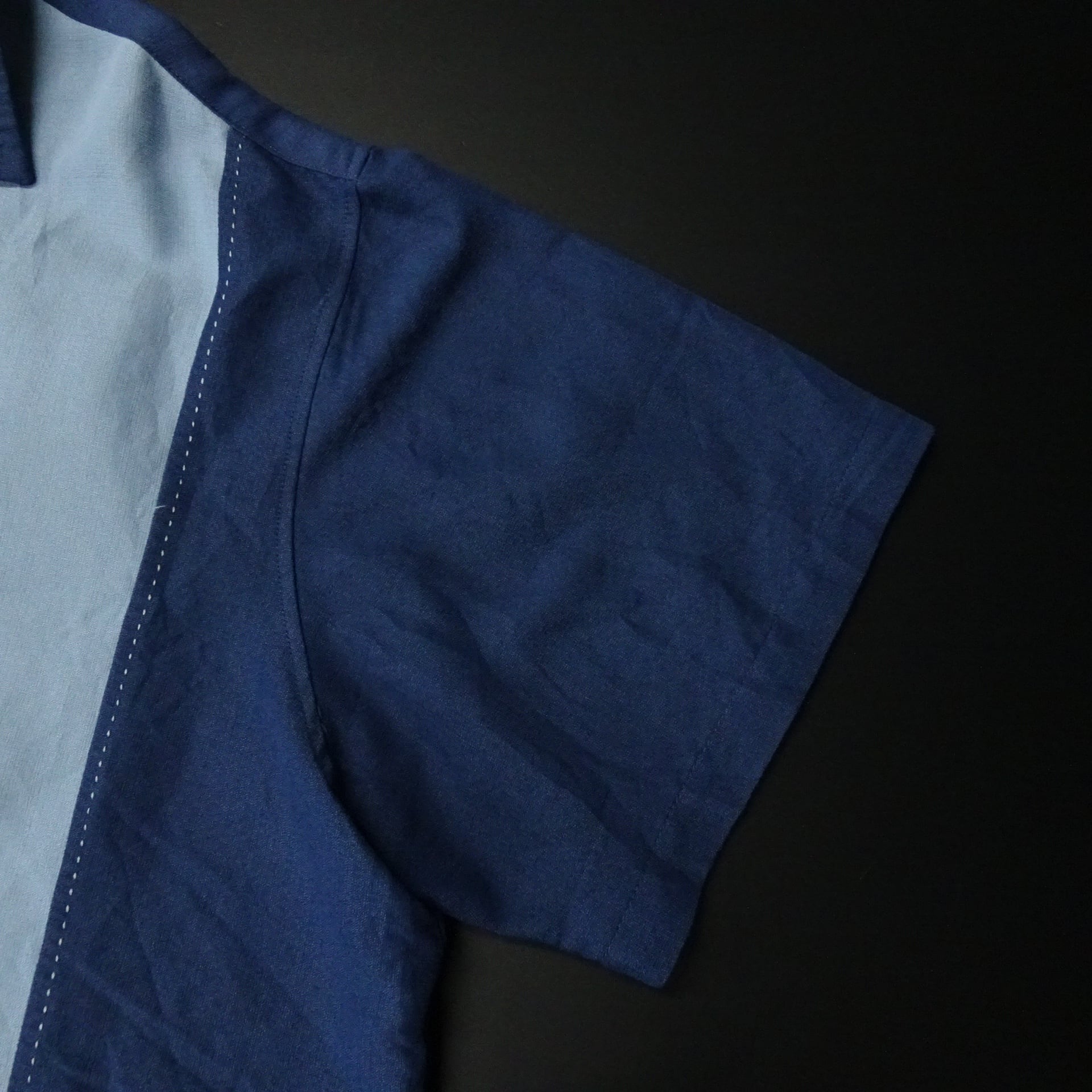 レーヨン混の開襟シャツ。切り替えデザインの定番アイテムです。