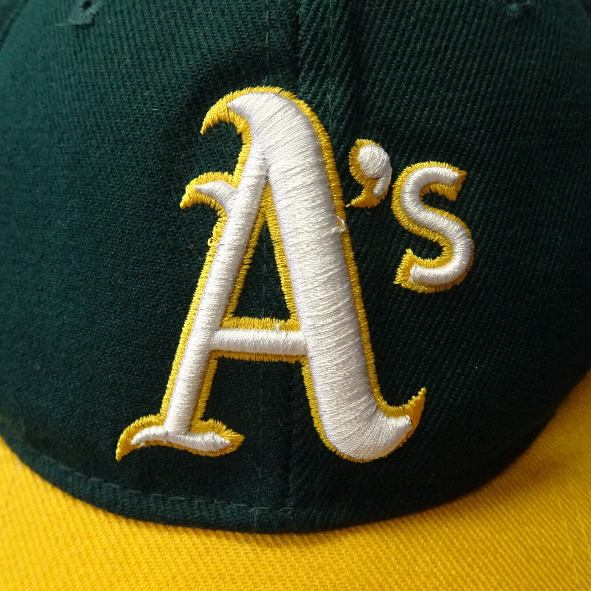 90s- 韓国製 Unknown ベースボールキャップ MLB オークランド アスレチックス 90年代~ グリーン イエロー