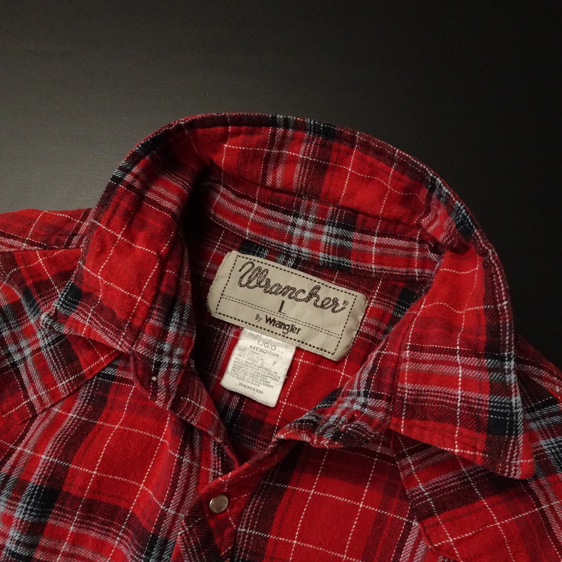 90s- Wrangler ラングラー 長袖ネルシャツ ランチャー チェック柄 ウエスタン 襟芯 90年代~ レッド