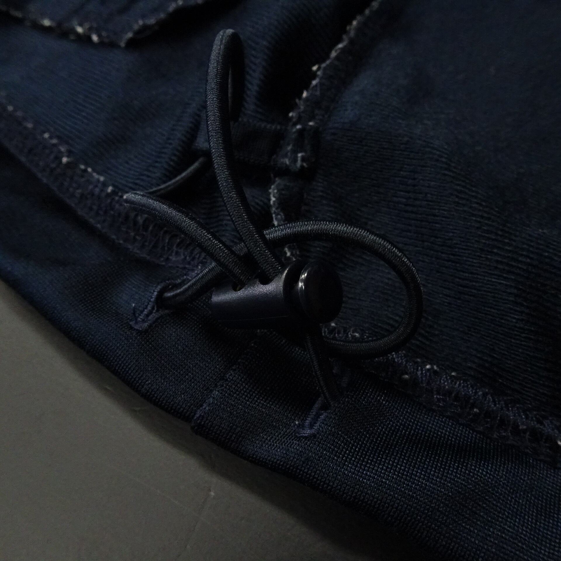 ポケットはジッパー仕様、ドローコードが付いているので丈の調整可能。