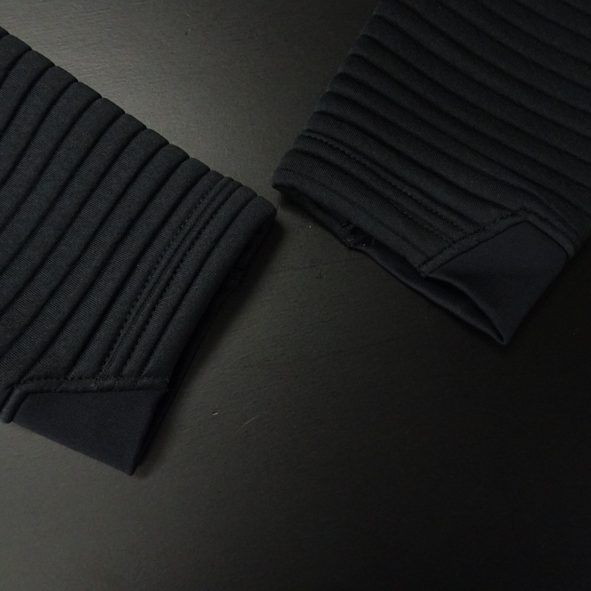 ゴルフラインのアイテムで、肩や袖がリブのようなデザインになってます。