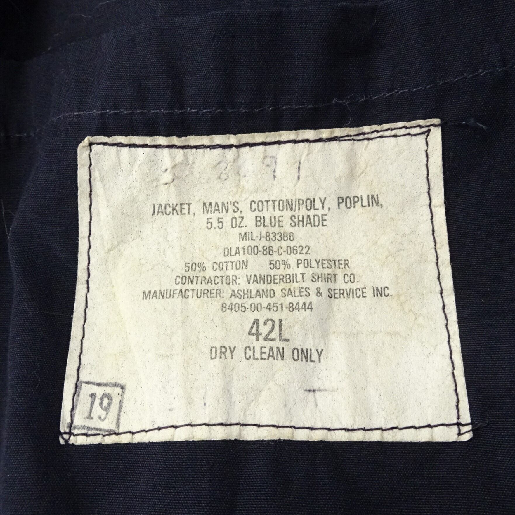 80s U.S.ARMY ポプリンジャケット MIL-J83386 5.5oz 86年 80年代~ ネイビー