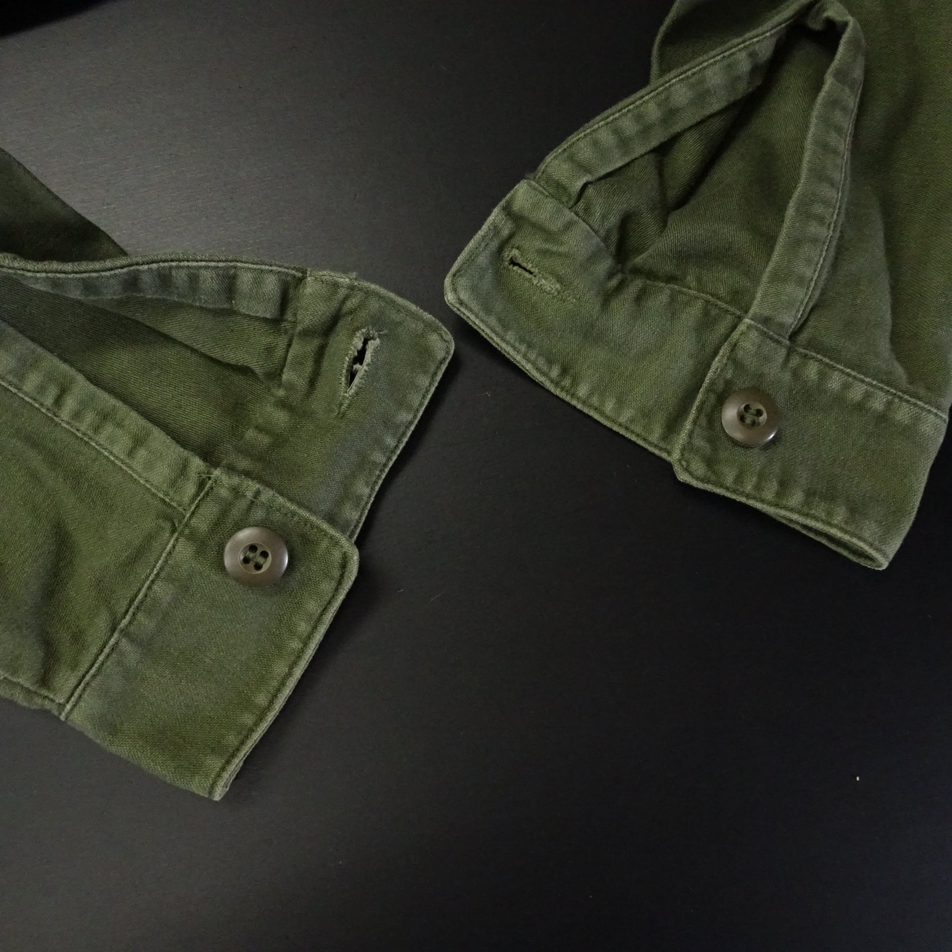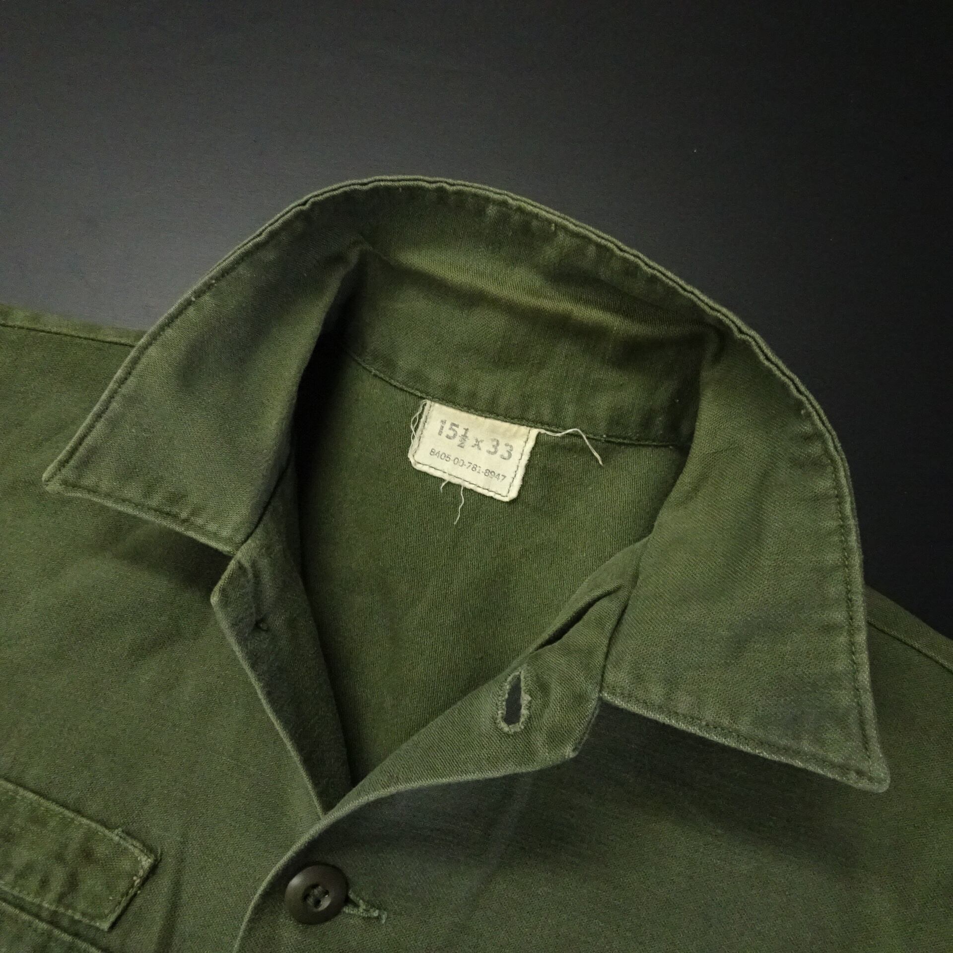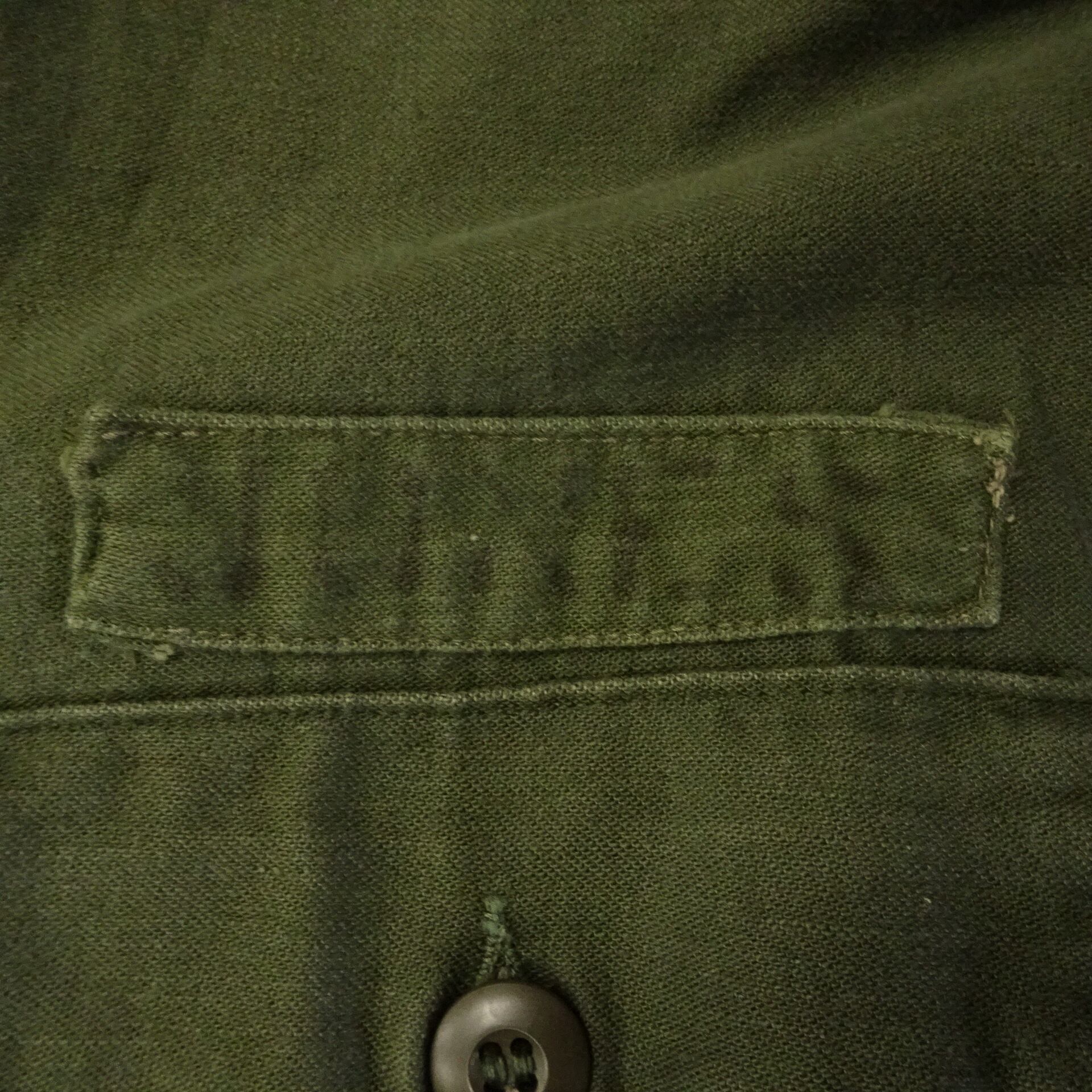 70s US ARMY 長袖ユーティリティシャツ OG-107 サテン ワッペン 70年代 グリーン