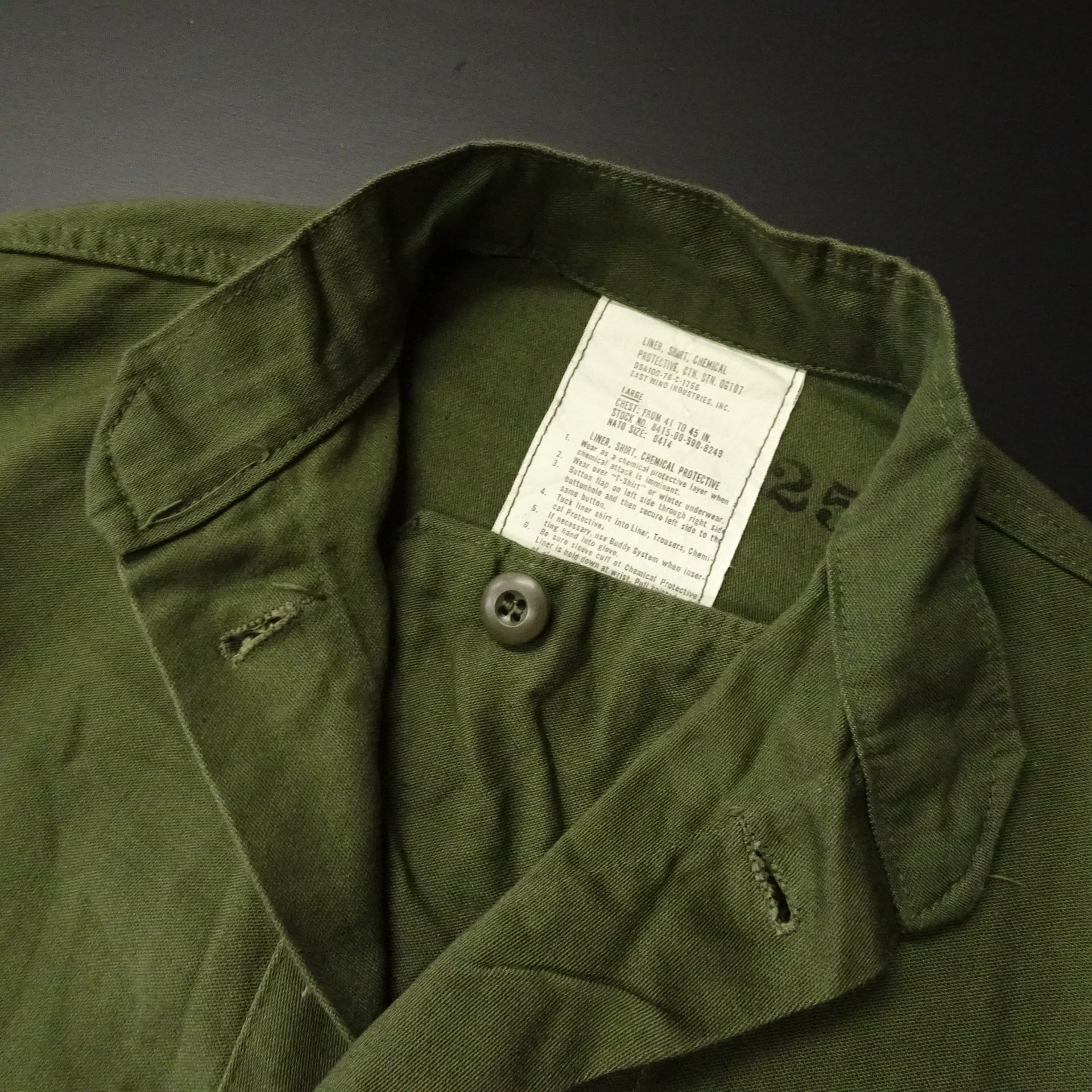 70年代ヴィンテージ、アメリカ軍のケミカルプロクティブライナーシャツです。