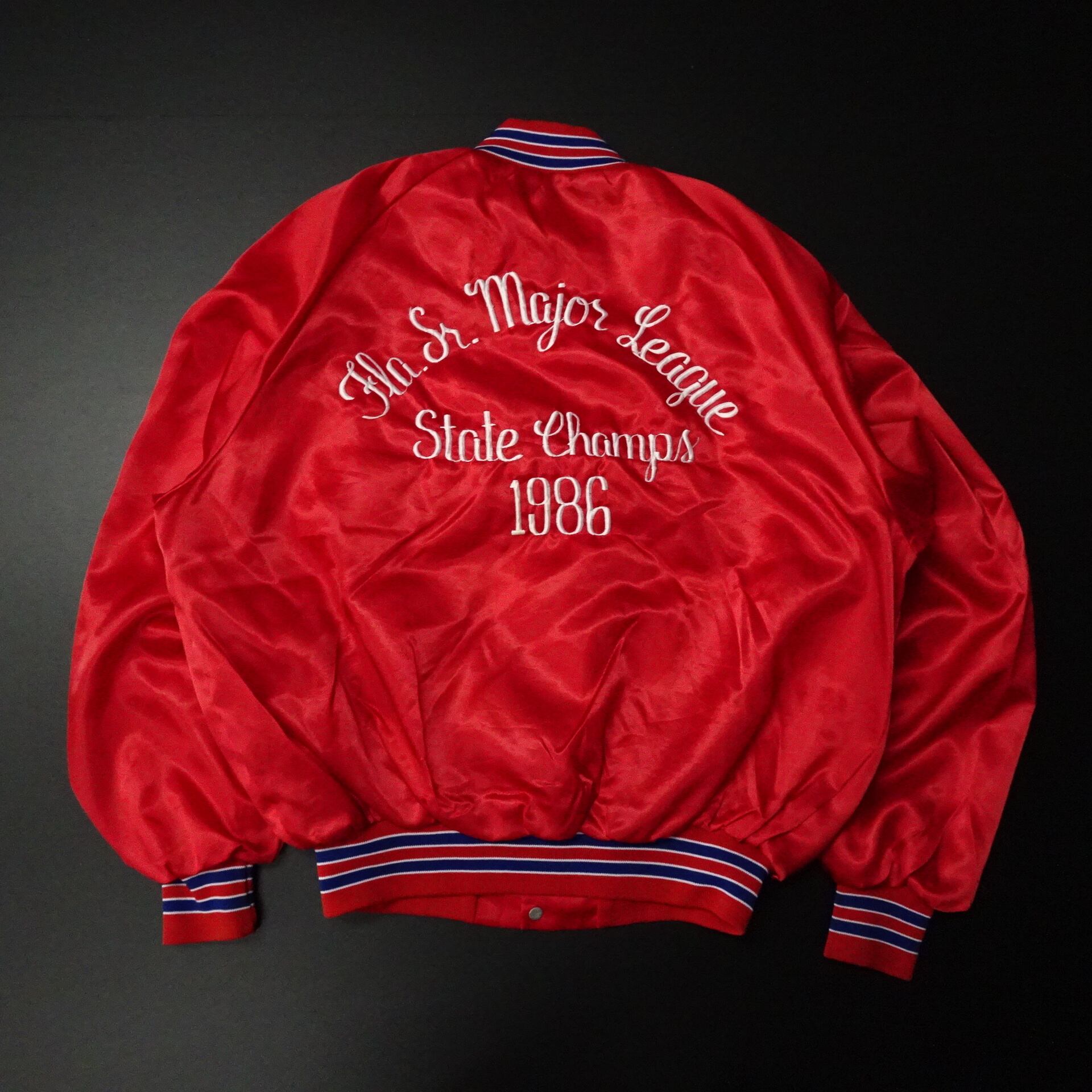 アメリカ製で、背中には「Fla.Sr.Major League State Champs 1986 」と刺繡されています。