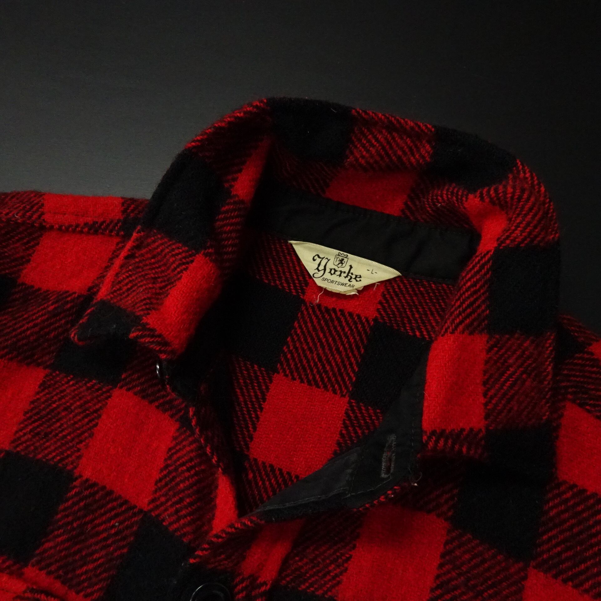 60s- Yorke SPORTWEAR 長袖ウールシャツ バッファローチェック 三角タグ 60年代~ レッド