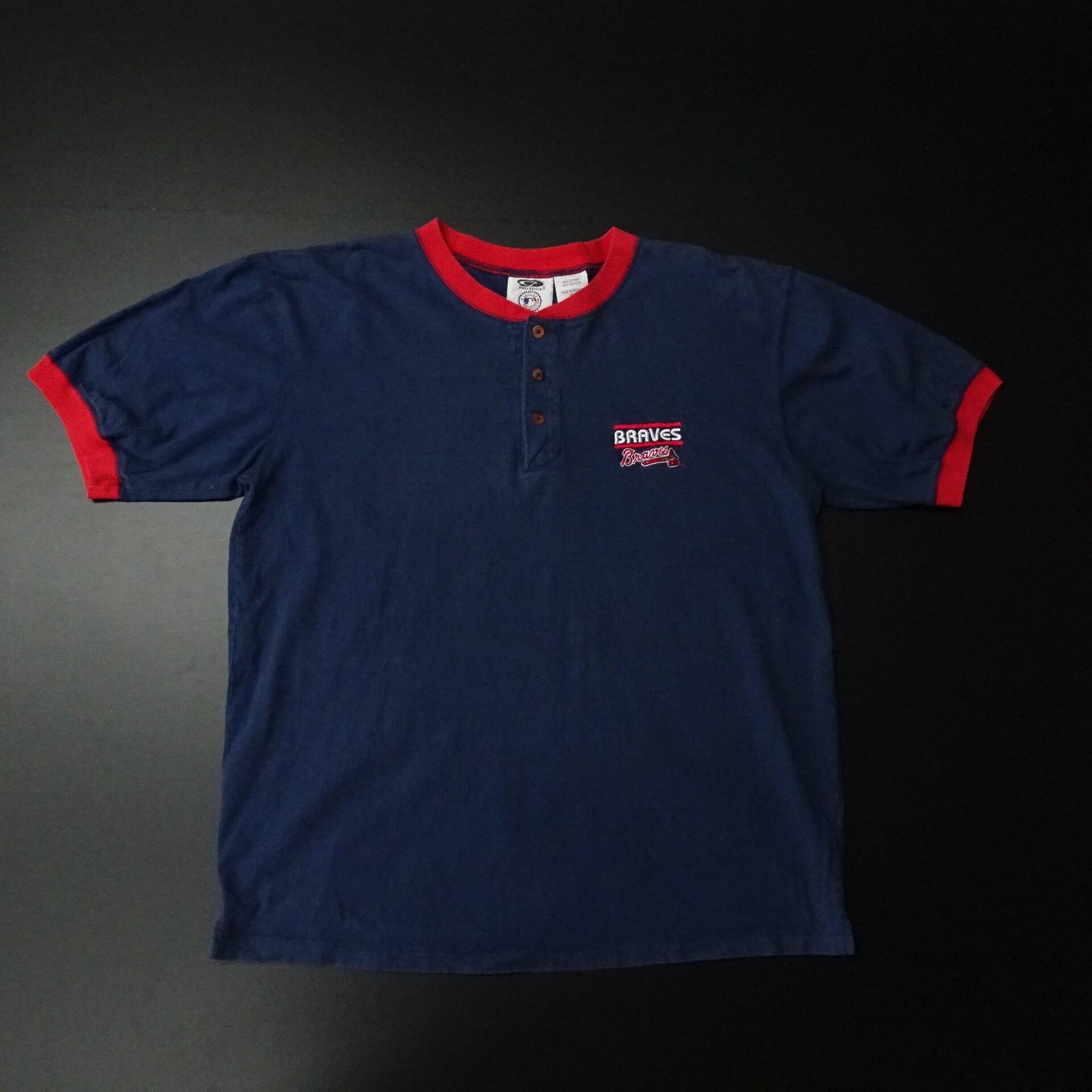 90s インド製 PROEDGE プロエッジ 半袖Tシャツ ヘンリーネック リンガー MLB アトランタ・ブレーブス 90年代 ネイビー