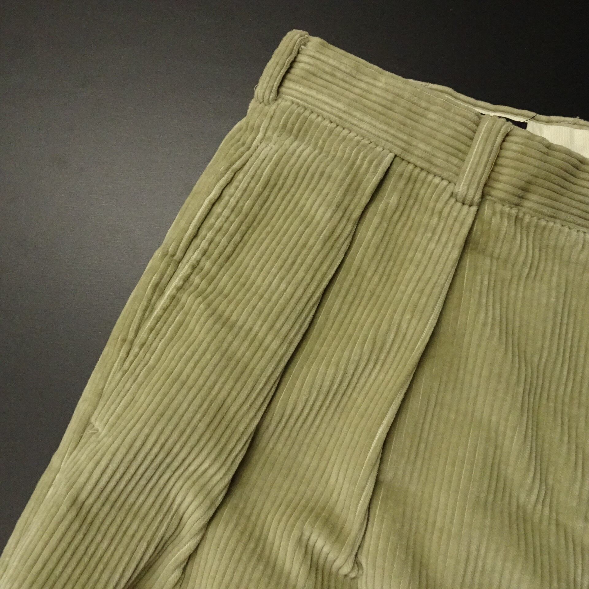 こちらはアメリカ製で太畝コーデュロイ、ツータックデザインなのでワイドシルエット。