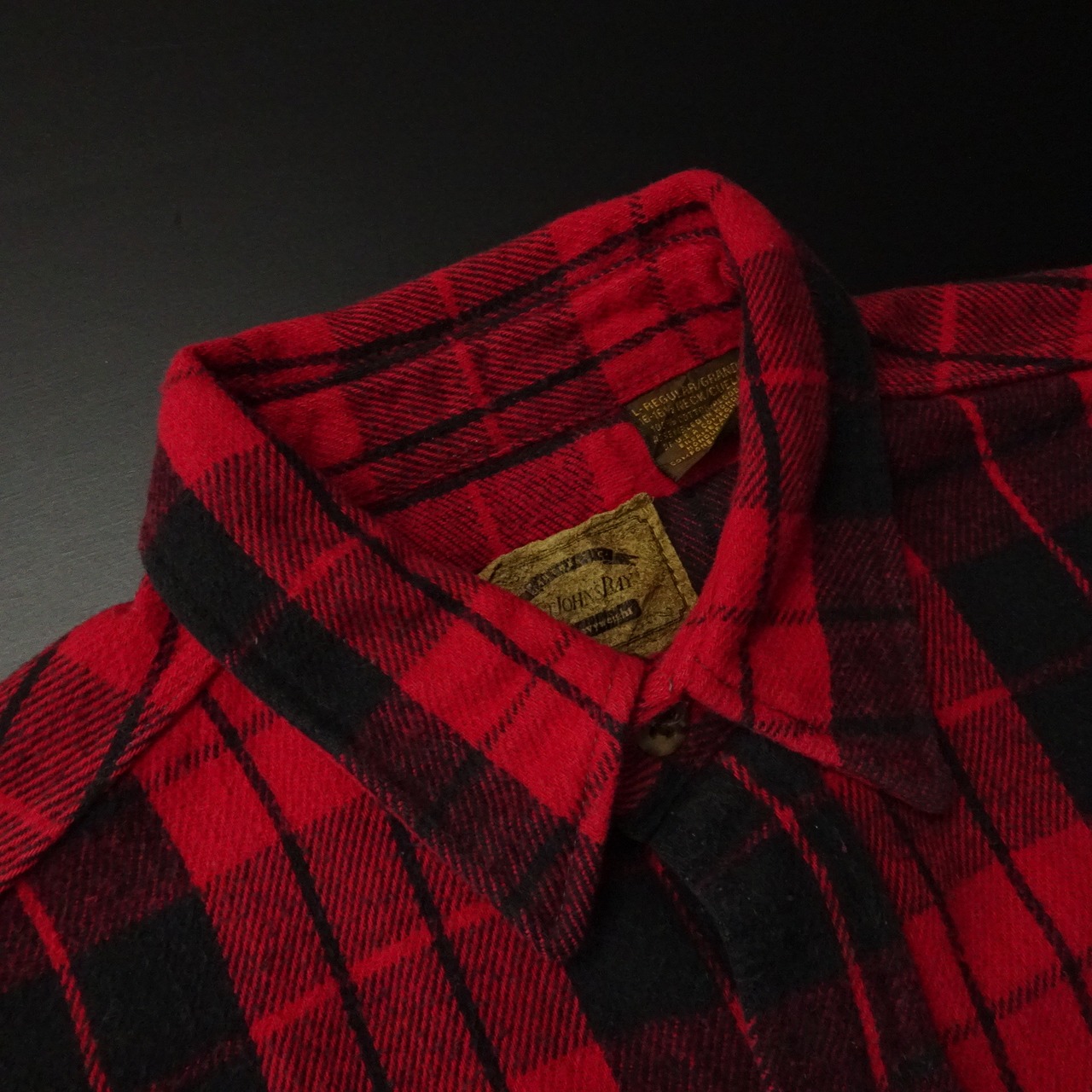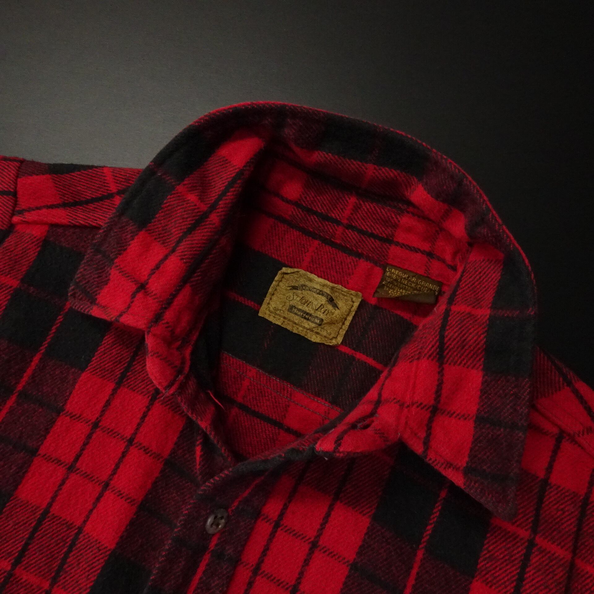 90s- ST.JOHN'S BAY セントジョンズベイ 長袖シャツ ヘビーフランネル 革パッチ チェック柄 90年代~ レッド