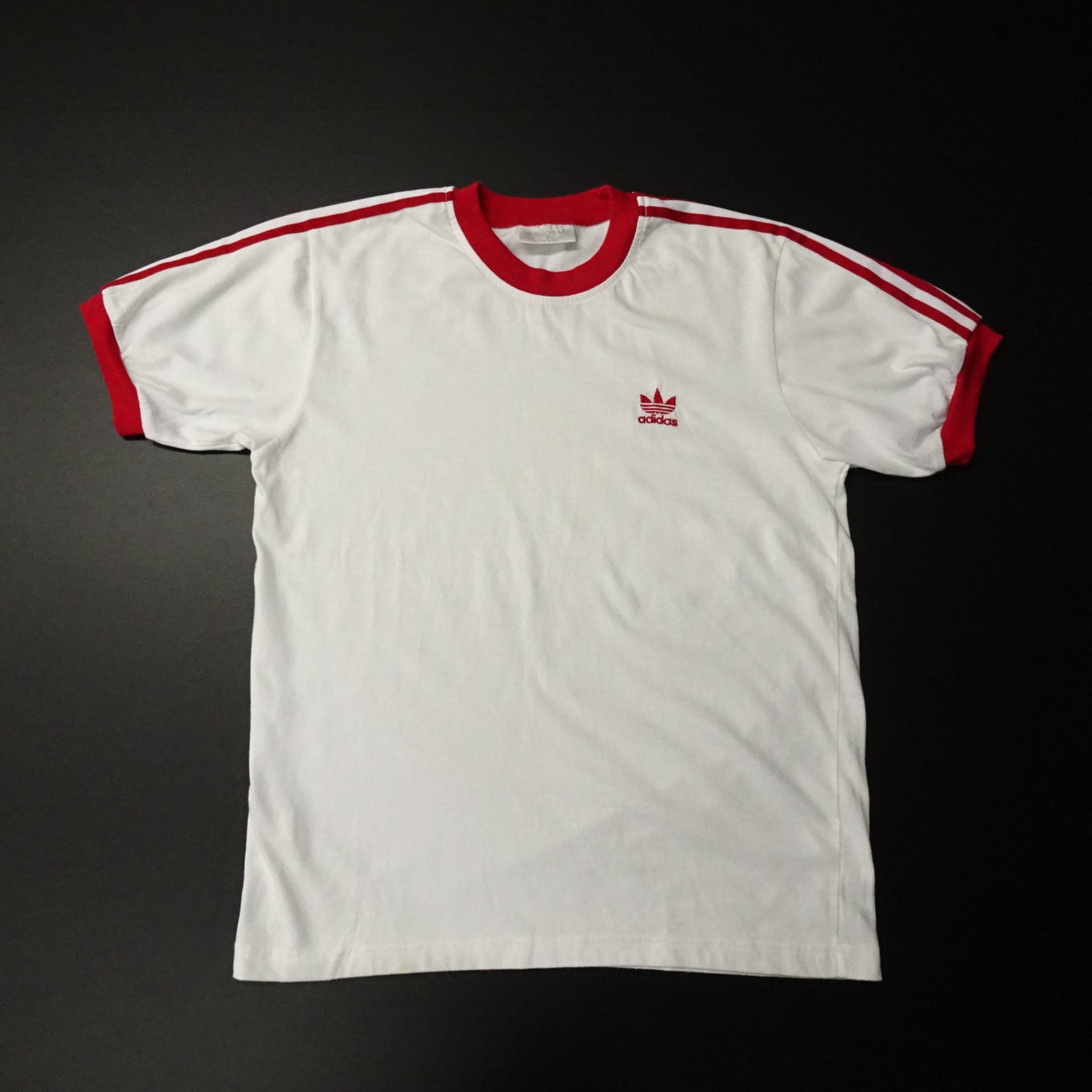 90s adidas アディダス 半袖Tシャツ リンガー 銀タグ 刺繡ロゴ 希少 90年代 ホワイト