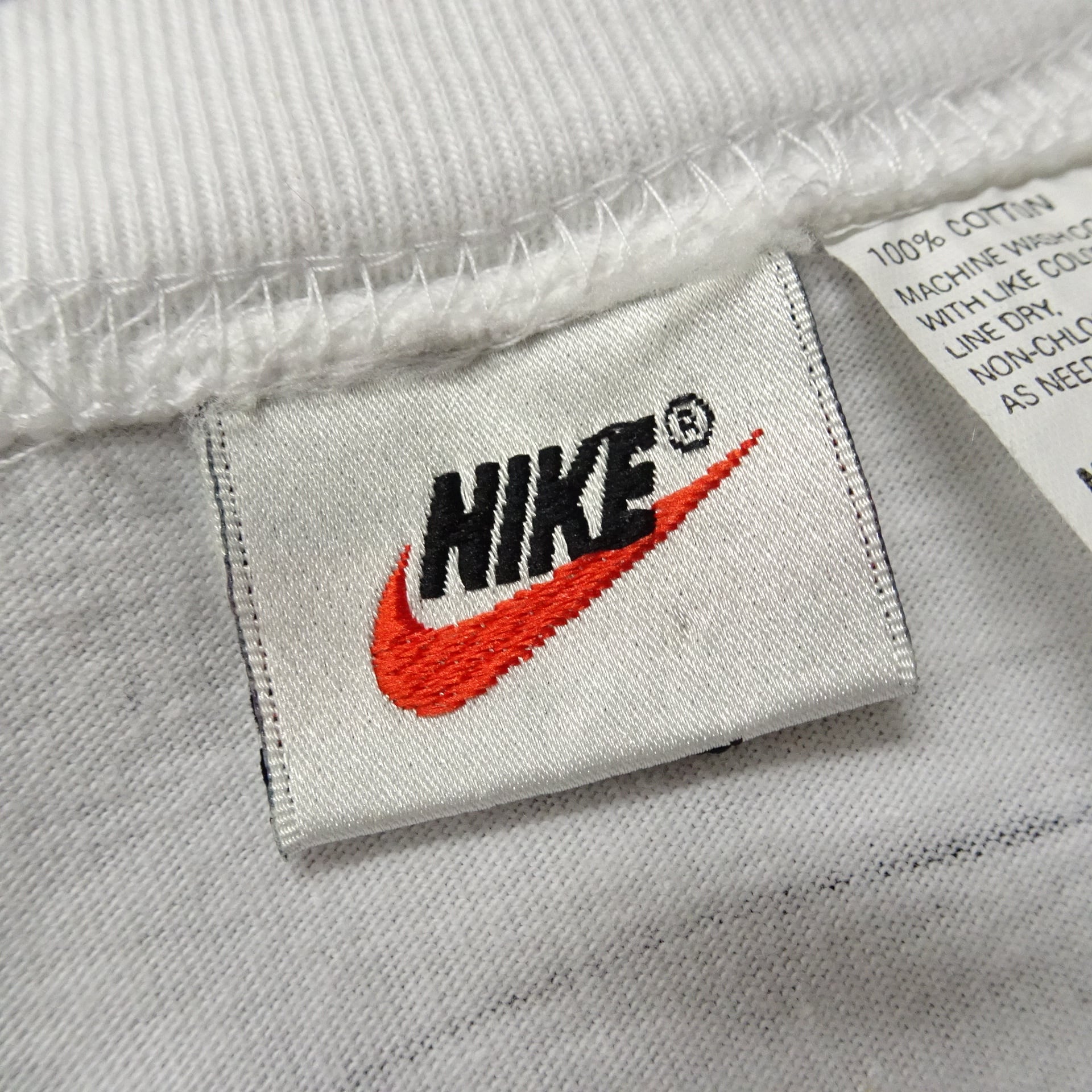 90s NIKE ナイキ 半袖Tシャツ センターロゴ 刺繍タグ 裾シングル 短丈 90年代 ホワイト