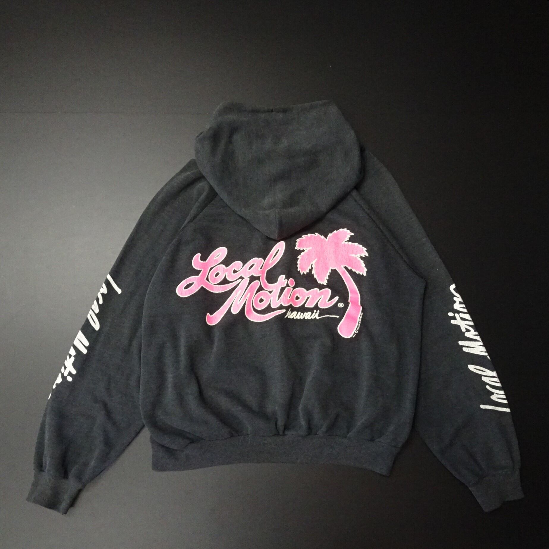 80s USA製 Local Motion ローカルモーション 長袖パーカー サーフ プリント 80年代 希少 80年代 チャコールグレー
