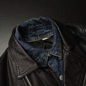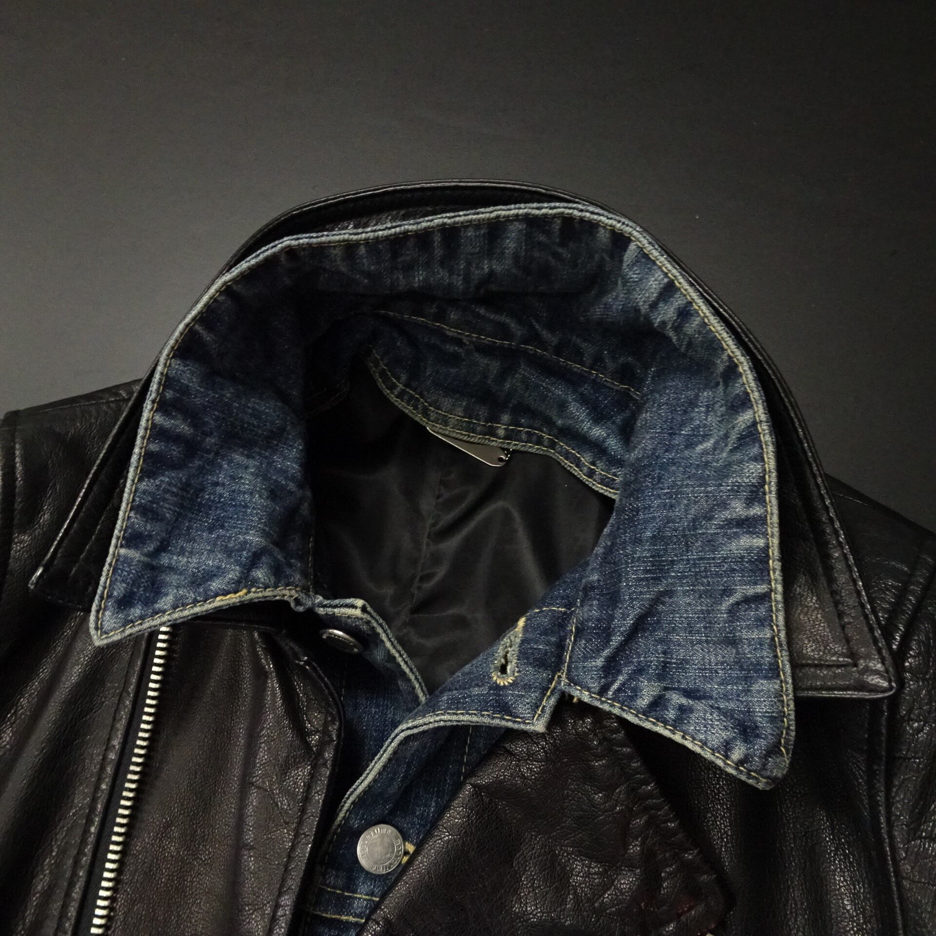 00s- モンキータイム/ユナイテッドアローズ ライダースジャケット 羊革 デニムレイヤー 00年代~ ブラック