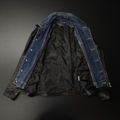 取り外し可能なデニムがレイヤードされているデザインで、ジッパーはアイディールを使用。