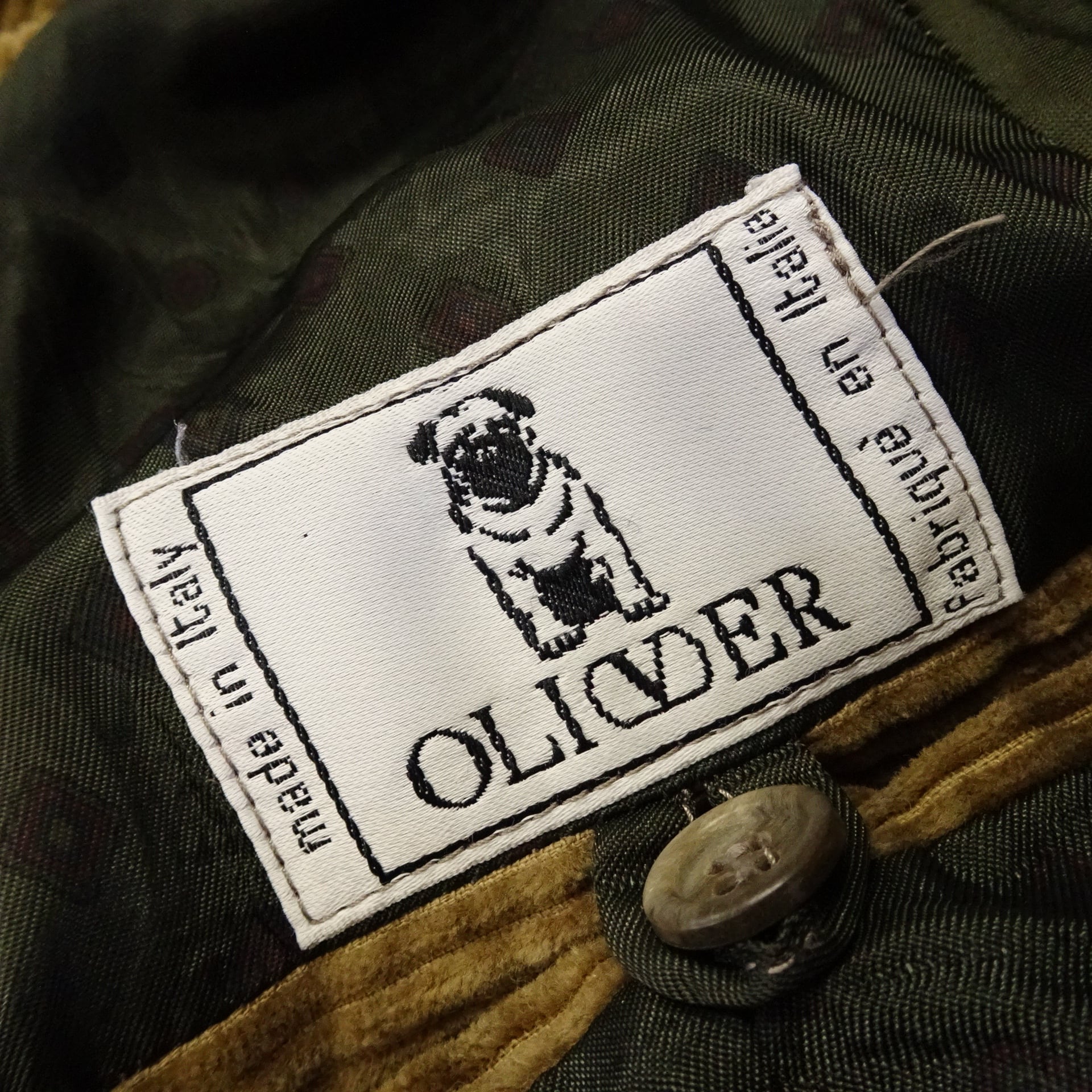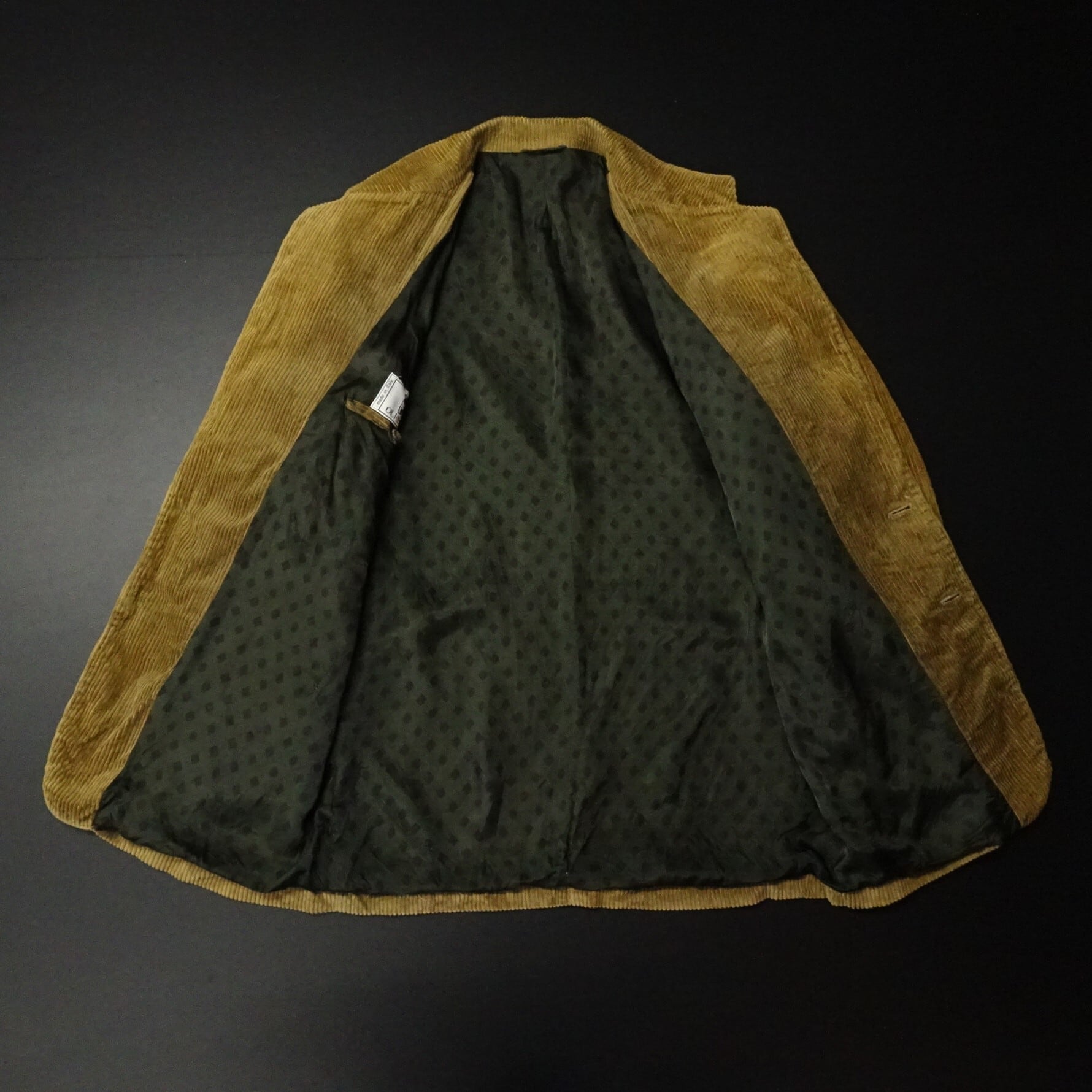 イタリア製で、太畝コーデュロイの裏地が総柄デザイン。