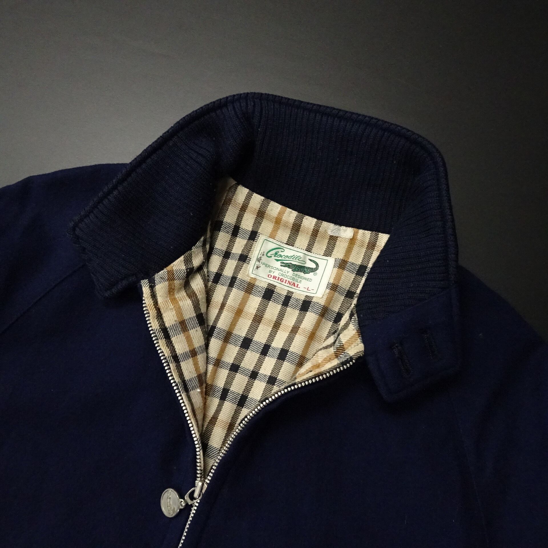 90s- 日本製 Crocodile クロコダイル スイングトップ ウール 裏地チェック オールド 90年代~ ネイビー