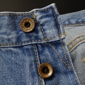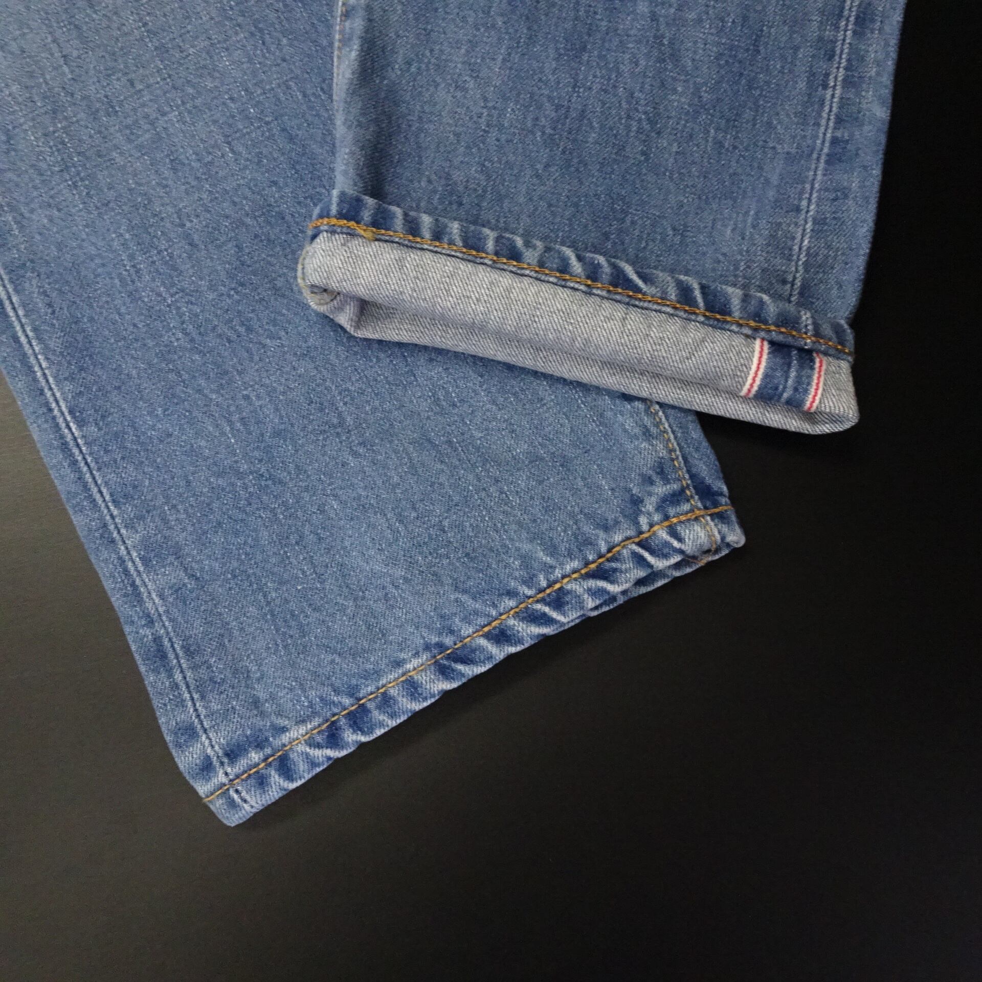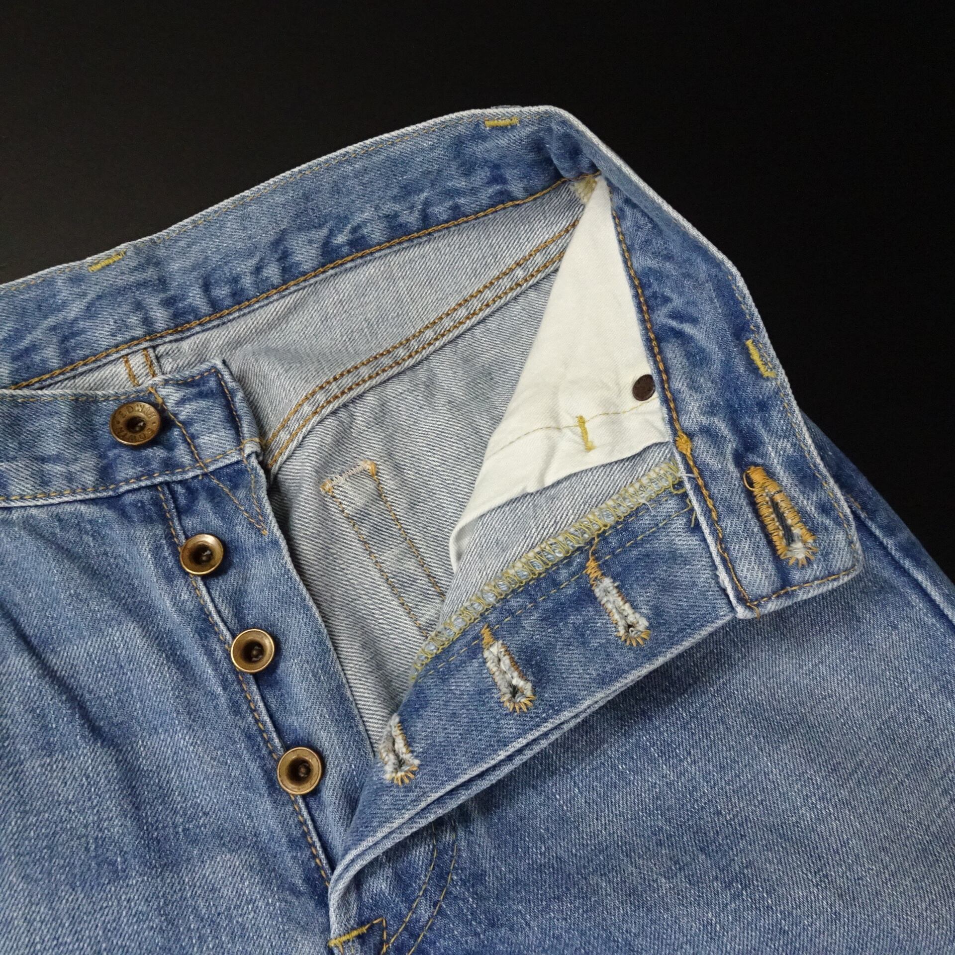 こちらは日本製でオレンジタブ、赤耳・ドーナツボタン・Vステッチ仕様。