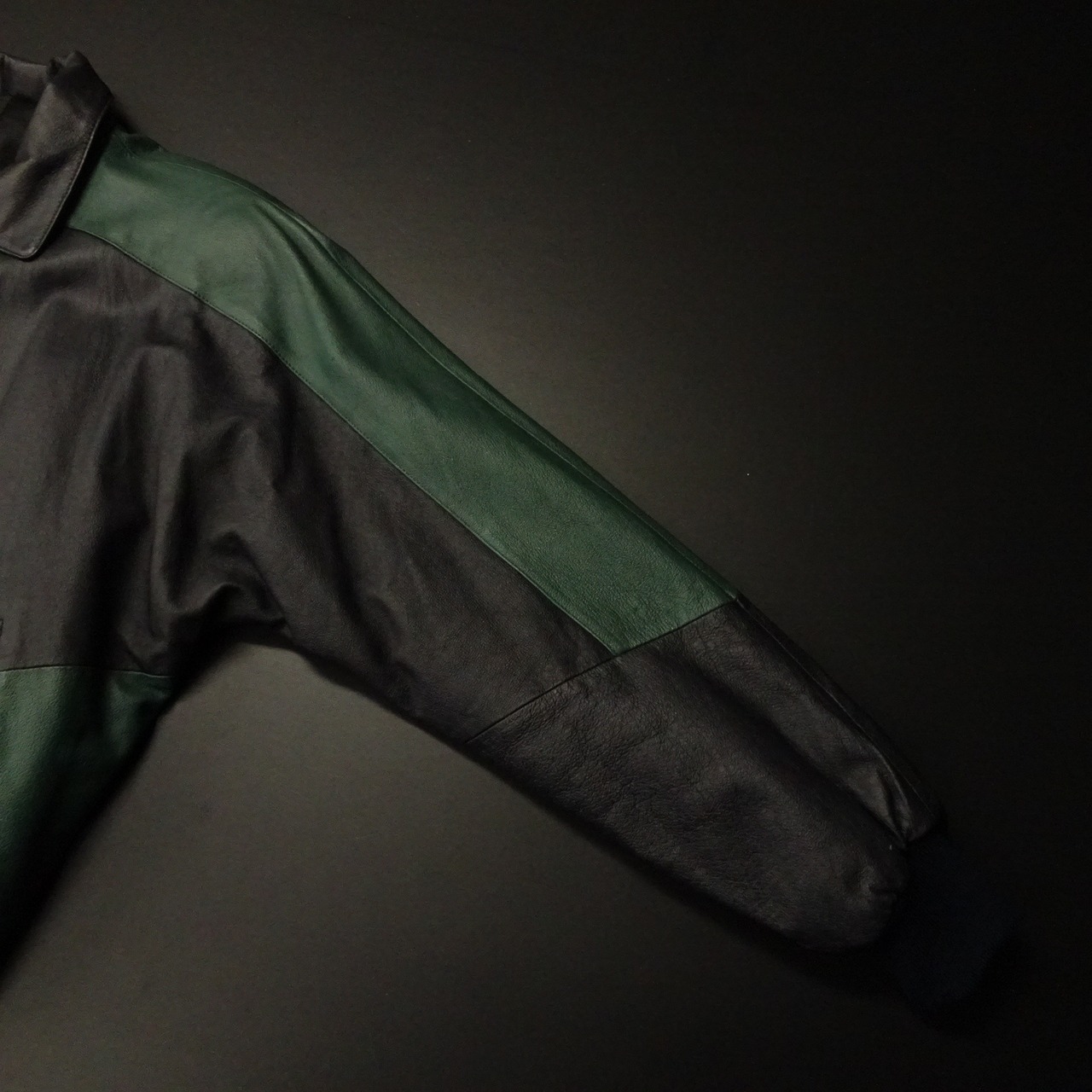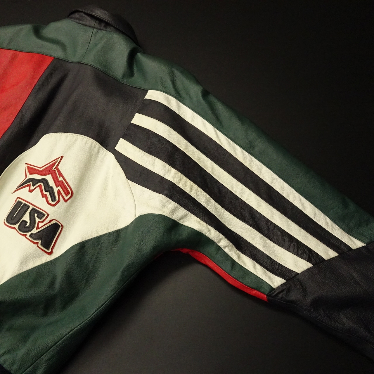 90s Unknown レザージャケット パッチワーク USAワッペン 豚革 希少 90年代 ブラック