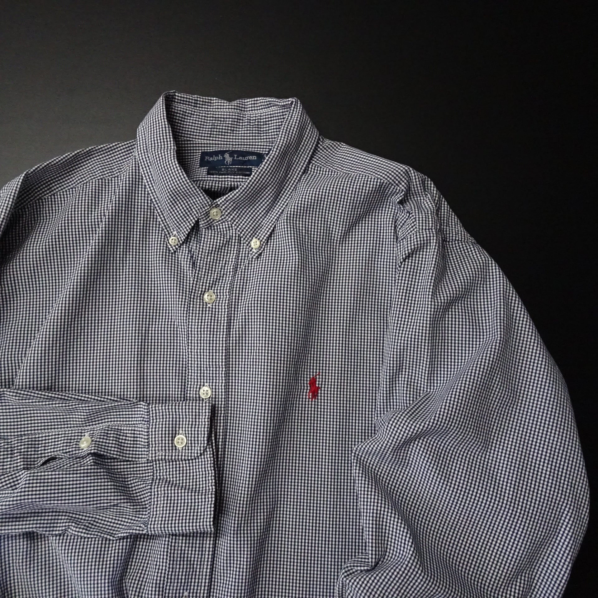 90s- Ralph Lauren ラルフローレン 長袖シャツ BLAKE TWO-PLY COTTON ギンガムチェック 90年代~ ブラック