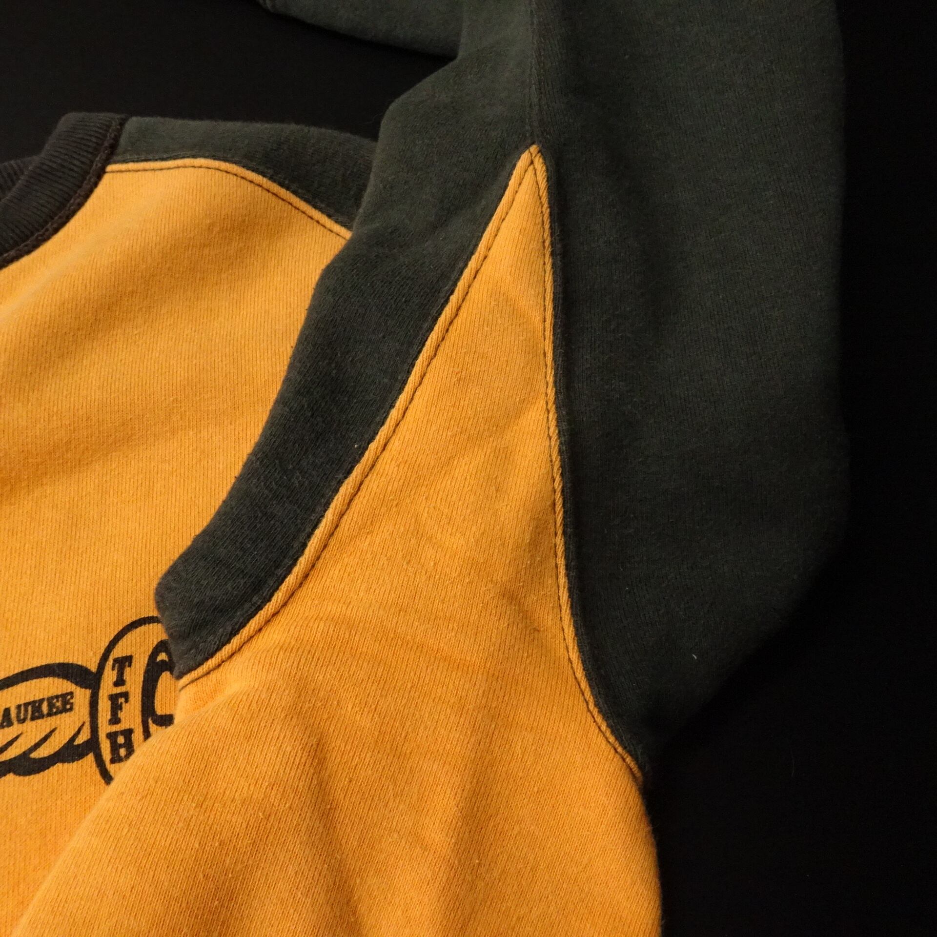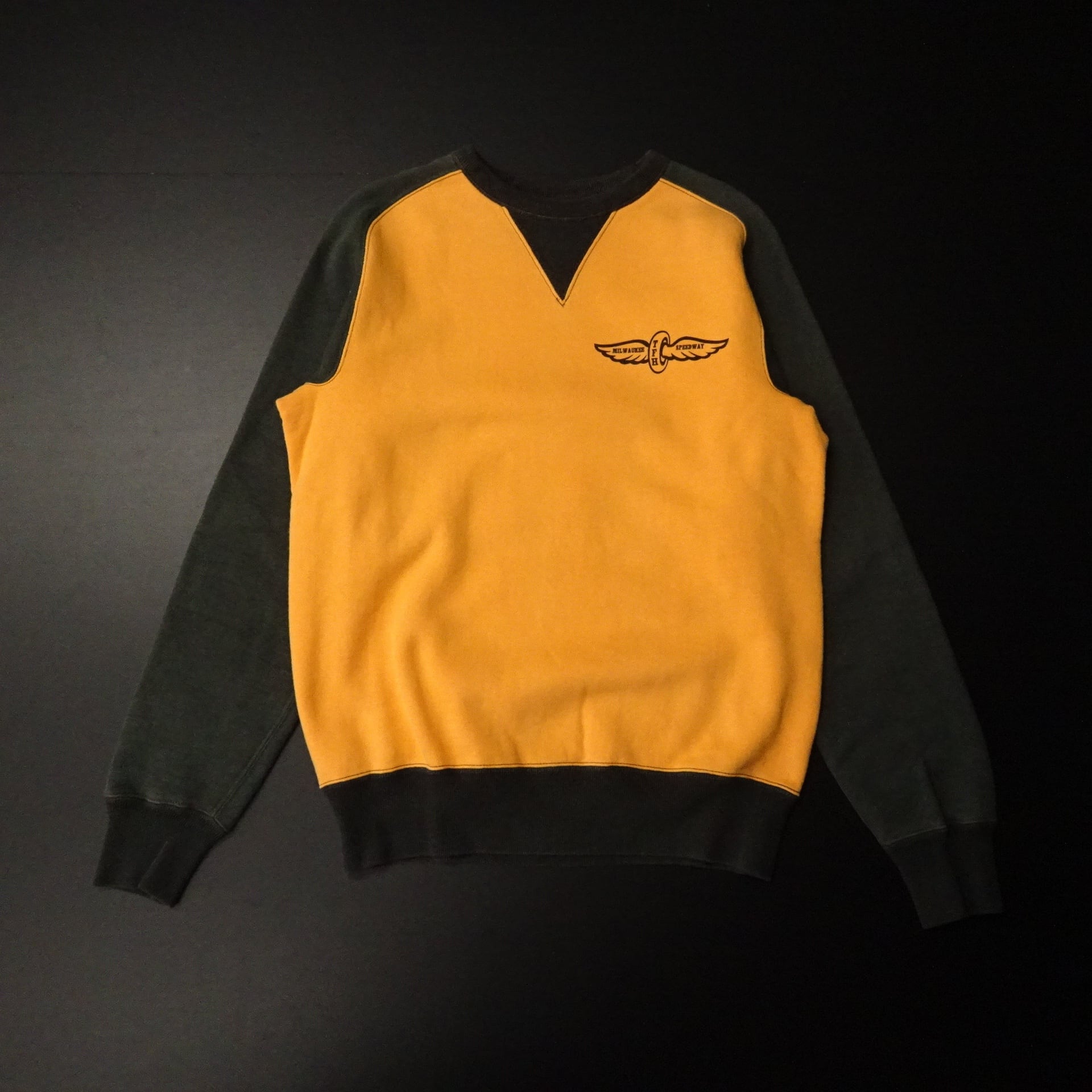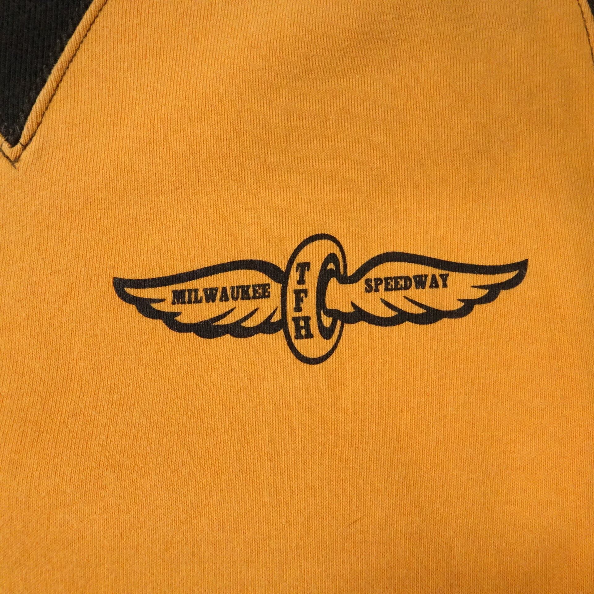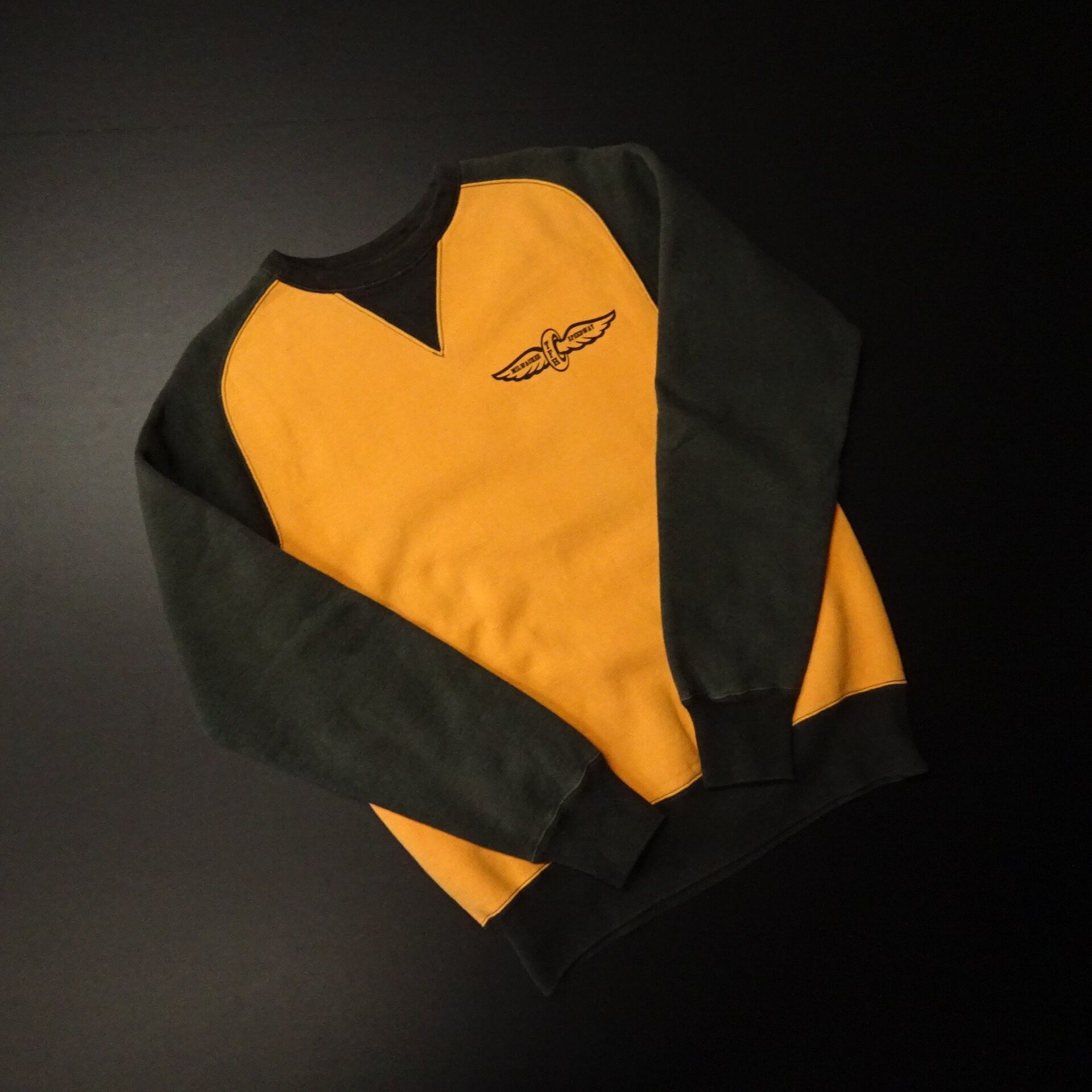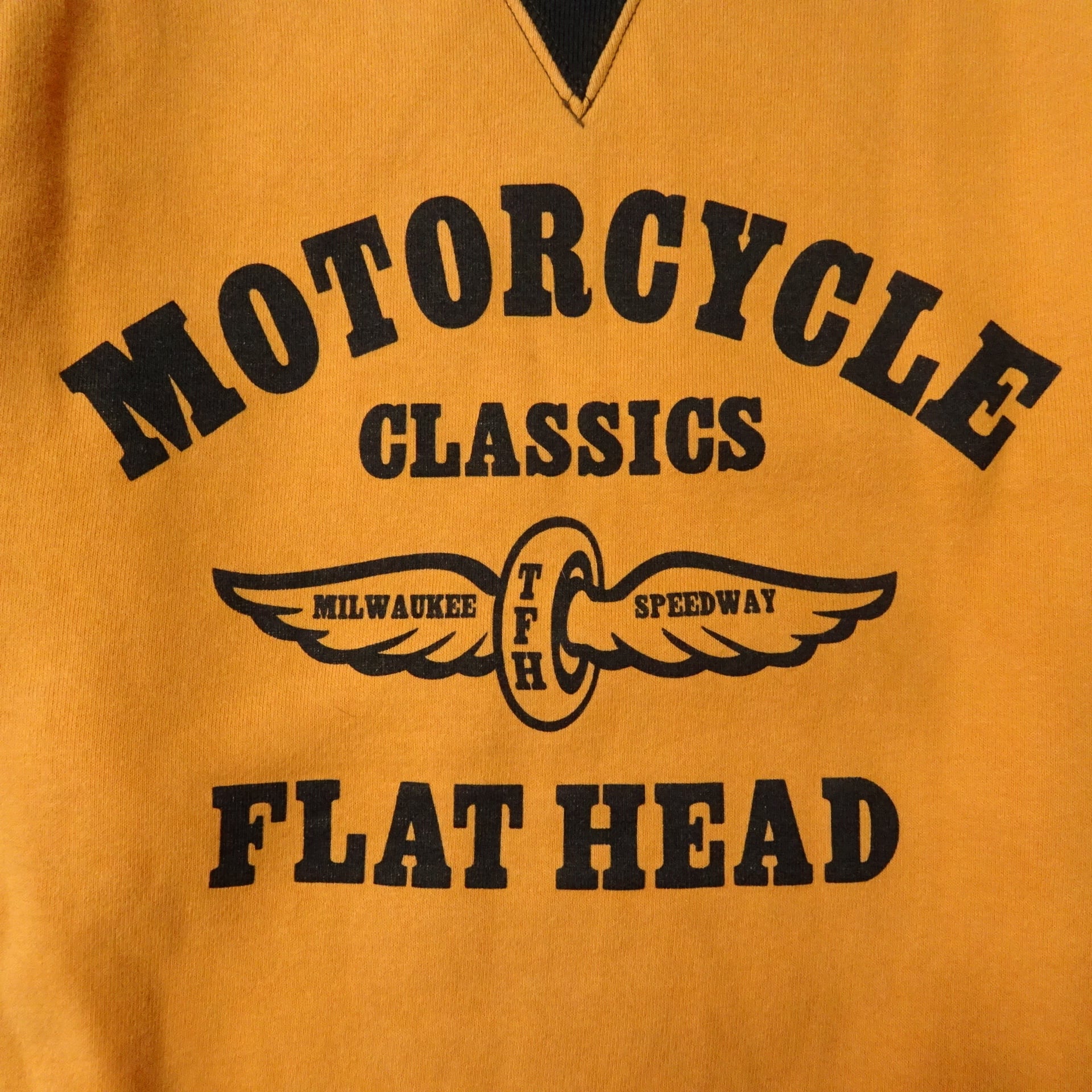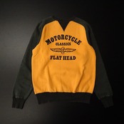 00s 日本製 FLAT HEAD フラットヘッド 長袖スウェット 両面Vガゼット 両面プリント モーターサイクル 00年代~ オレンジ ブラック