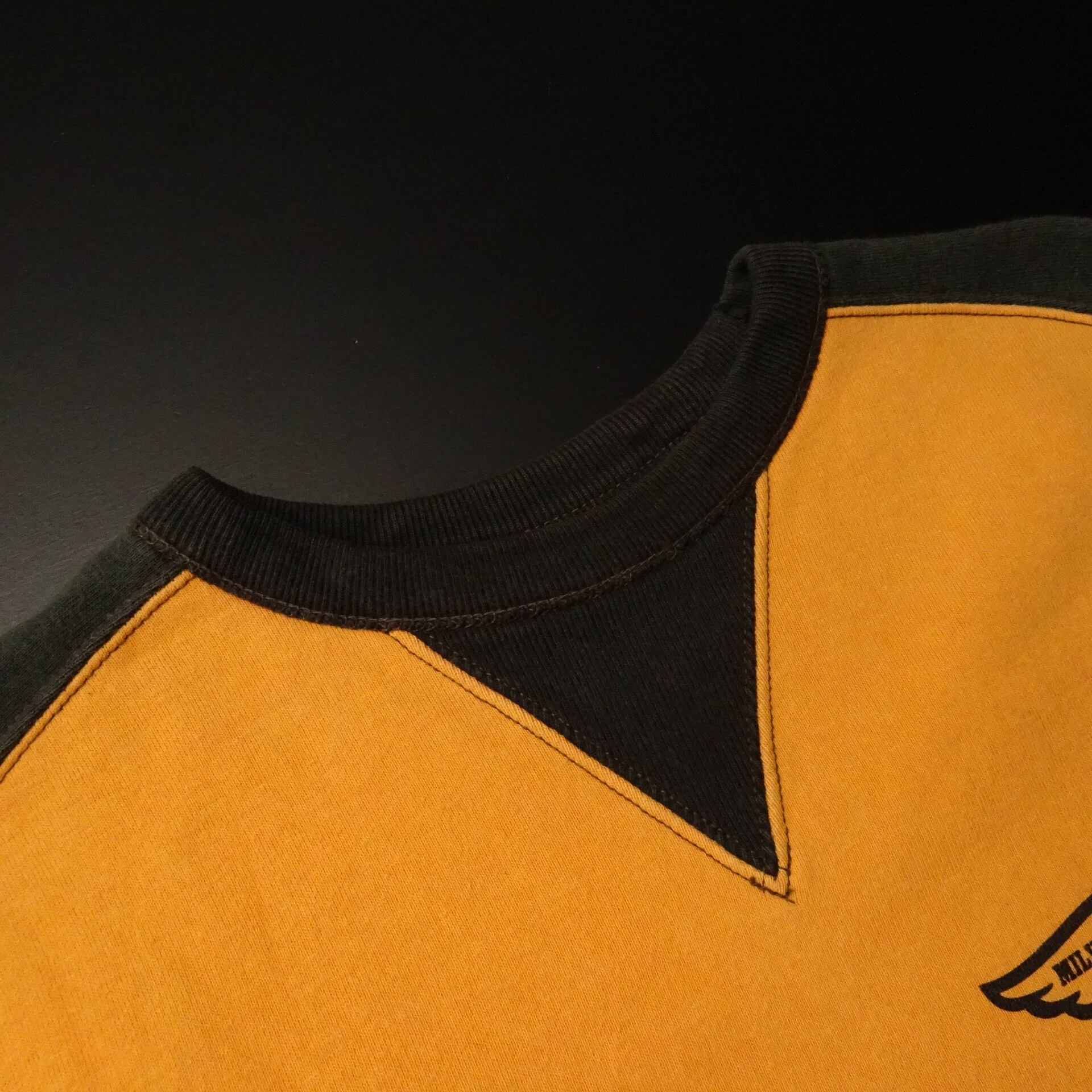 日本製で、両面Vガゼットのラグラン袖デザイン。
