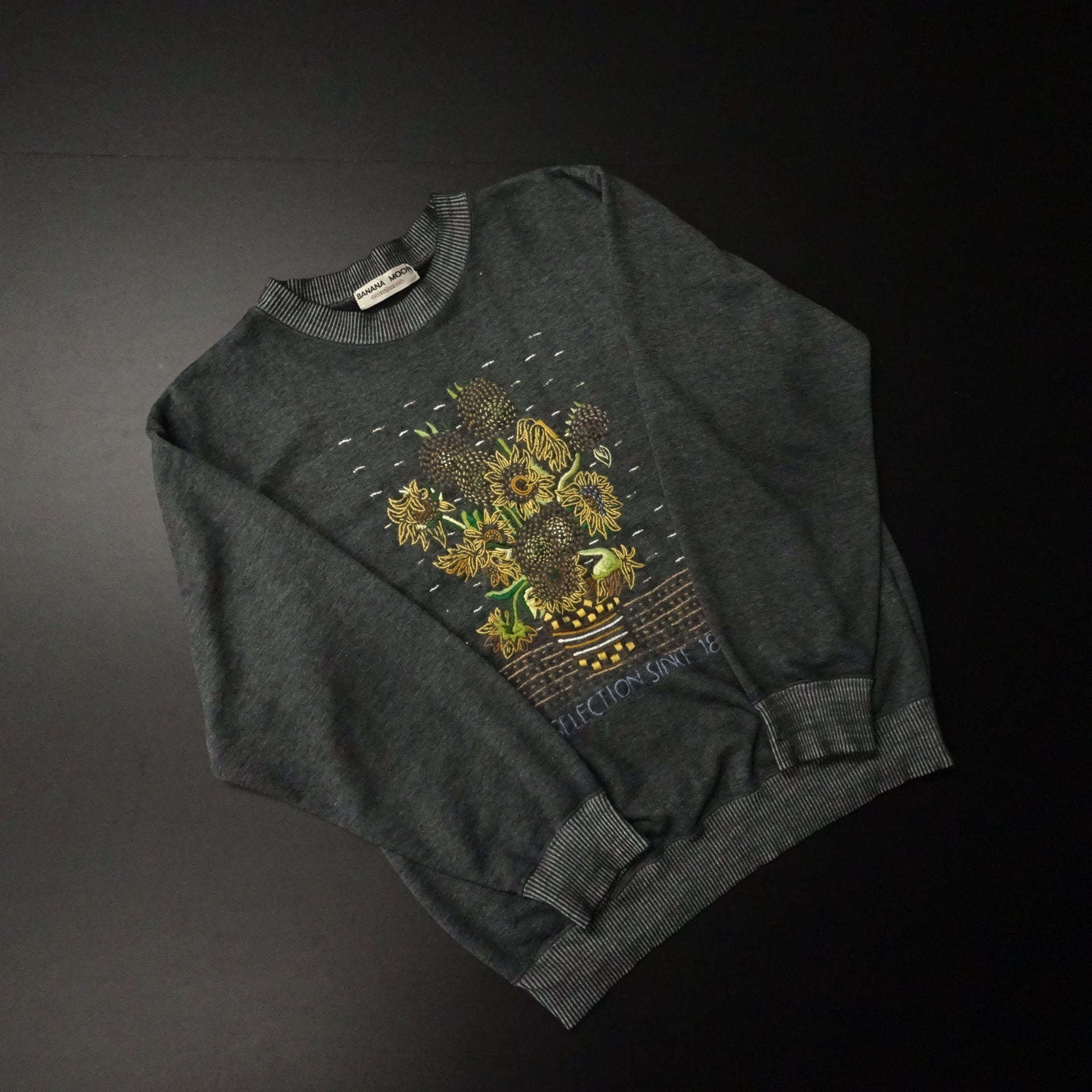 80s BANANA MOON バナナムーン 長袖スウェット ファン・ゴッホ ひまわり 刺繍 オールド 80年代 チャコールグレー