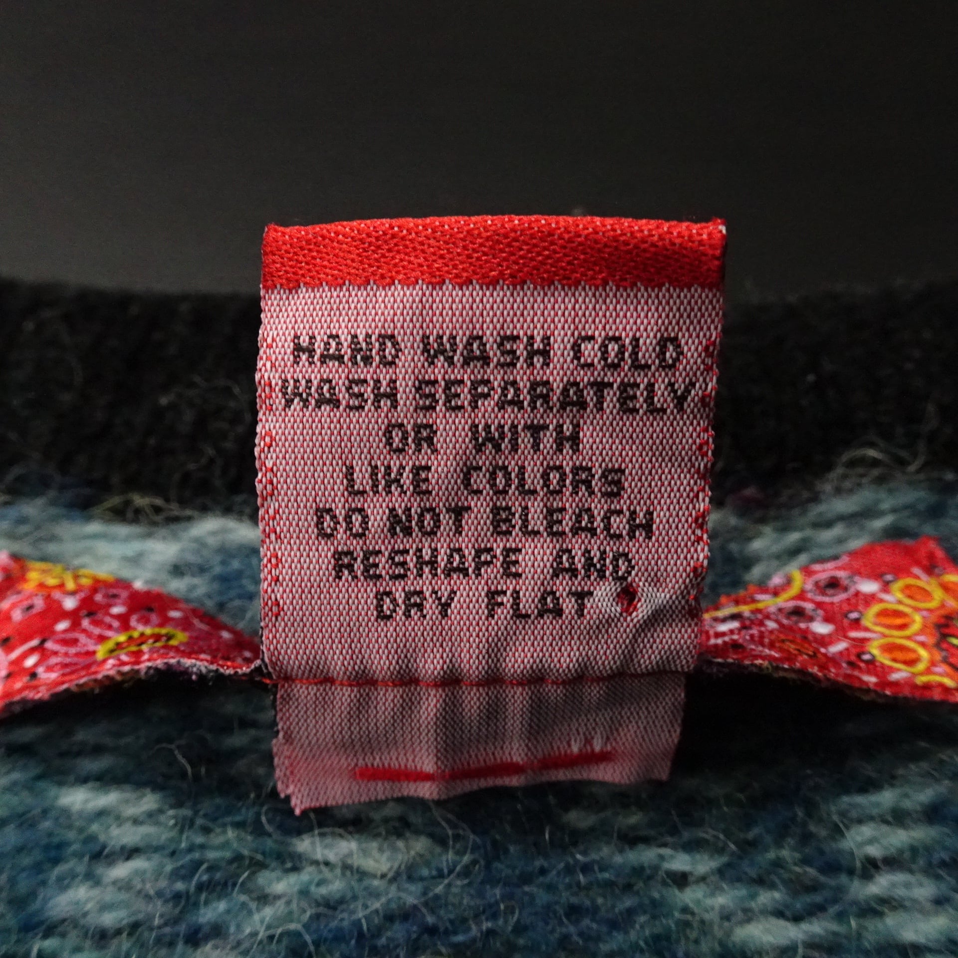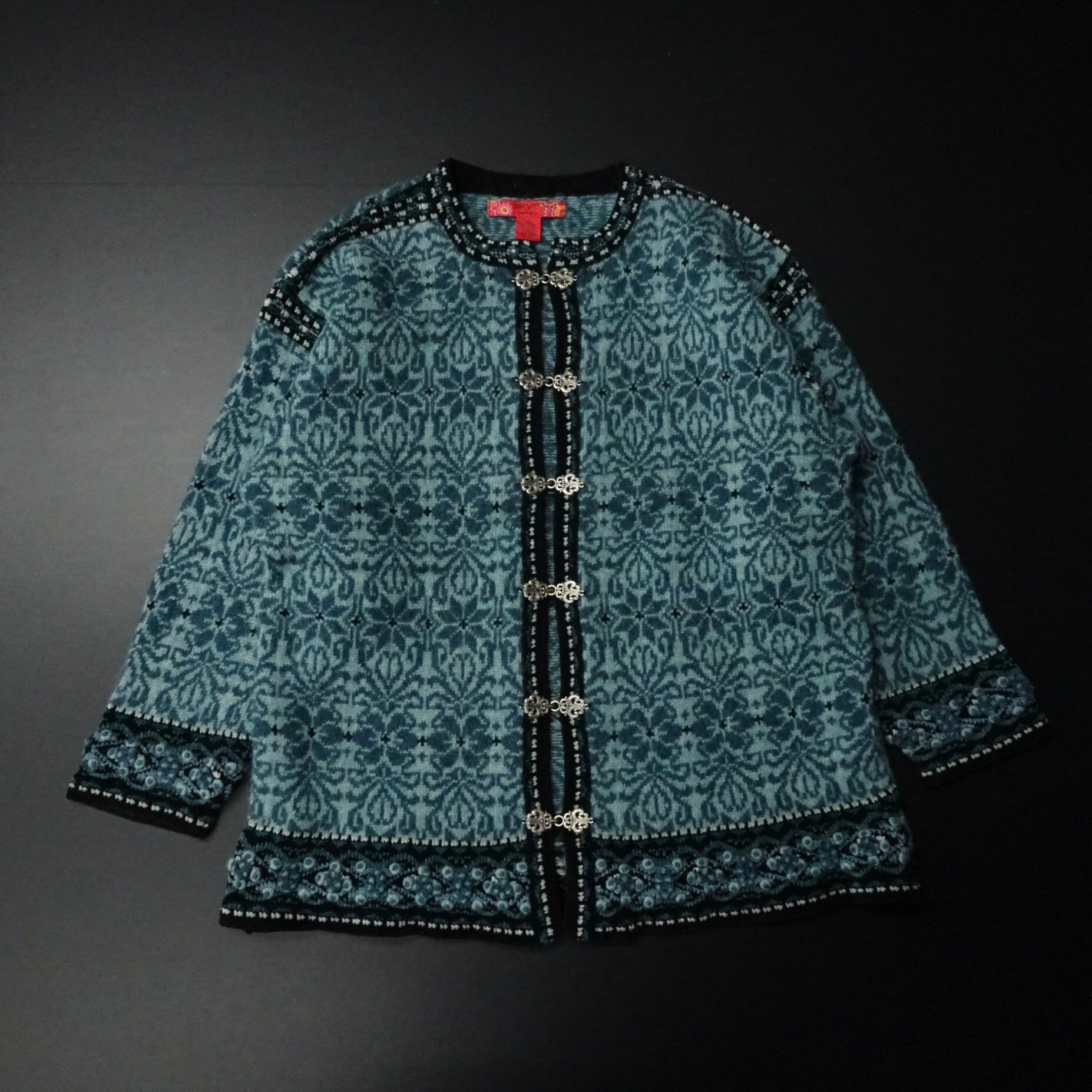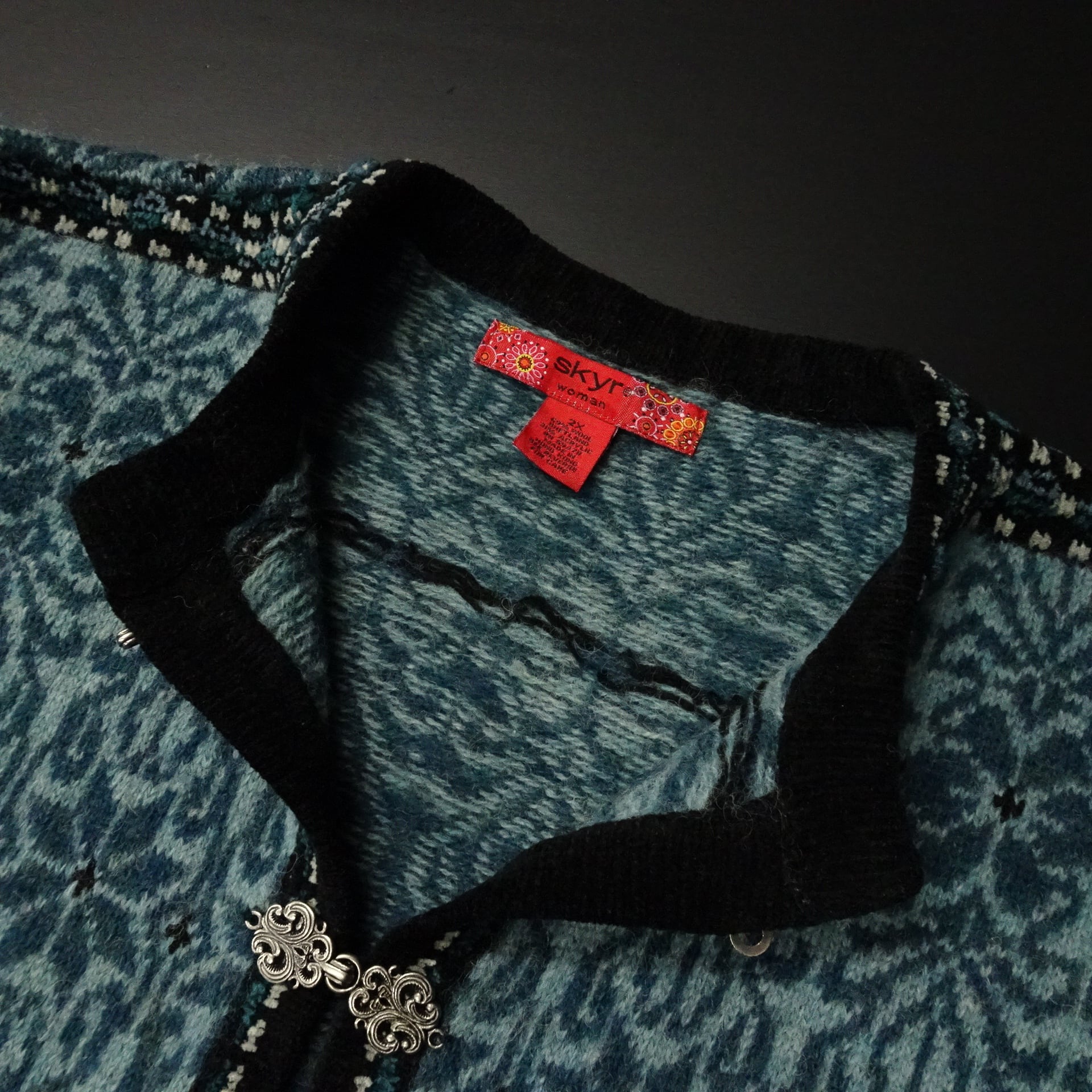 90s 香港製 skyr スキール 長袖カーディガン ノルディック柄 メタルフック 90年代 ミント系