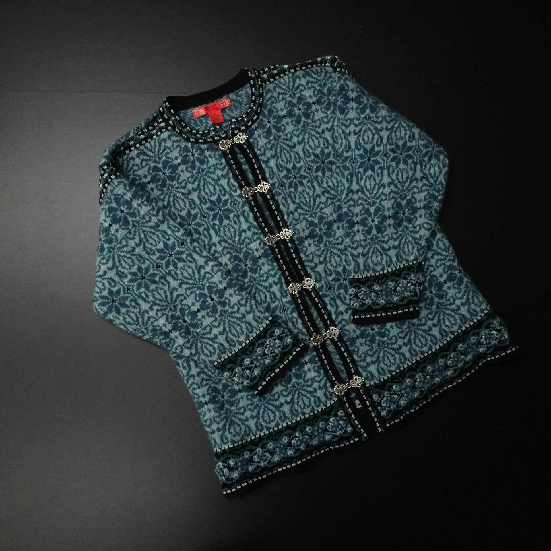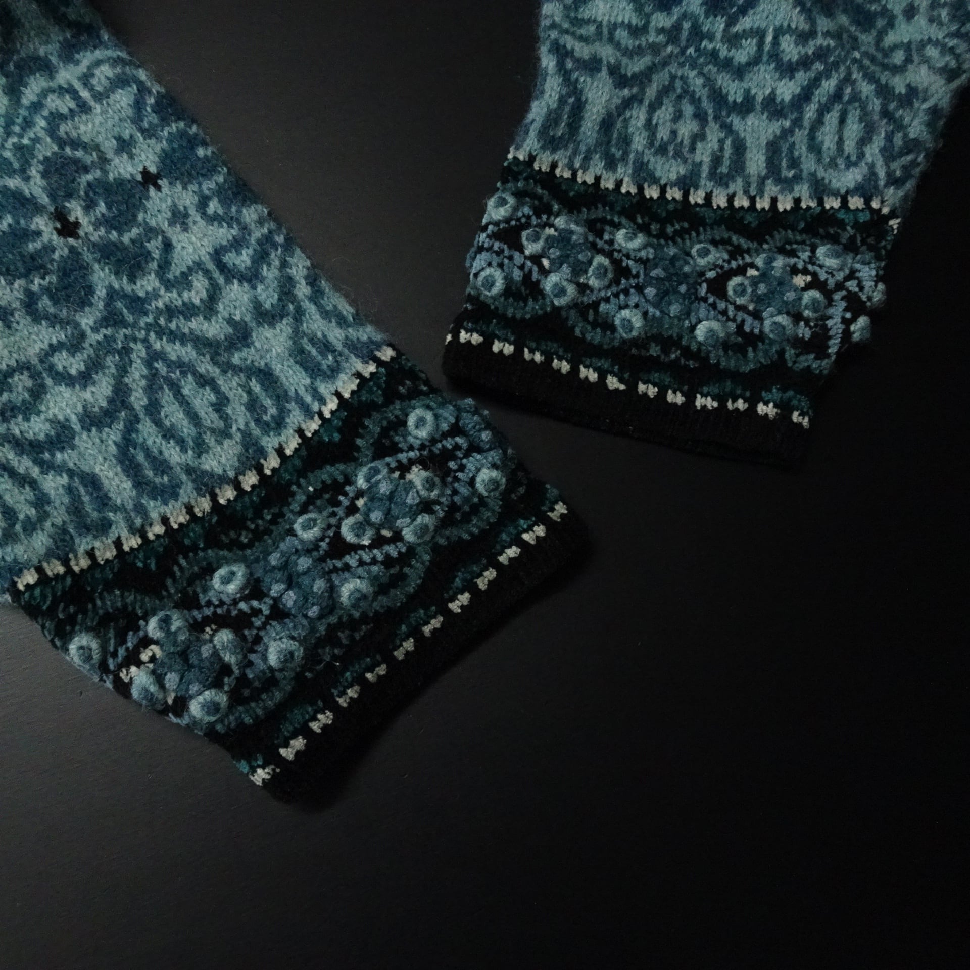 香港製の、ノルディック柄・メタルフック仕様で袖と裾は立体感のあるデザインになってます。