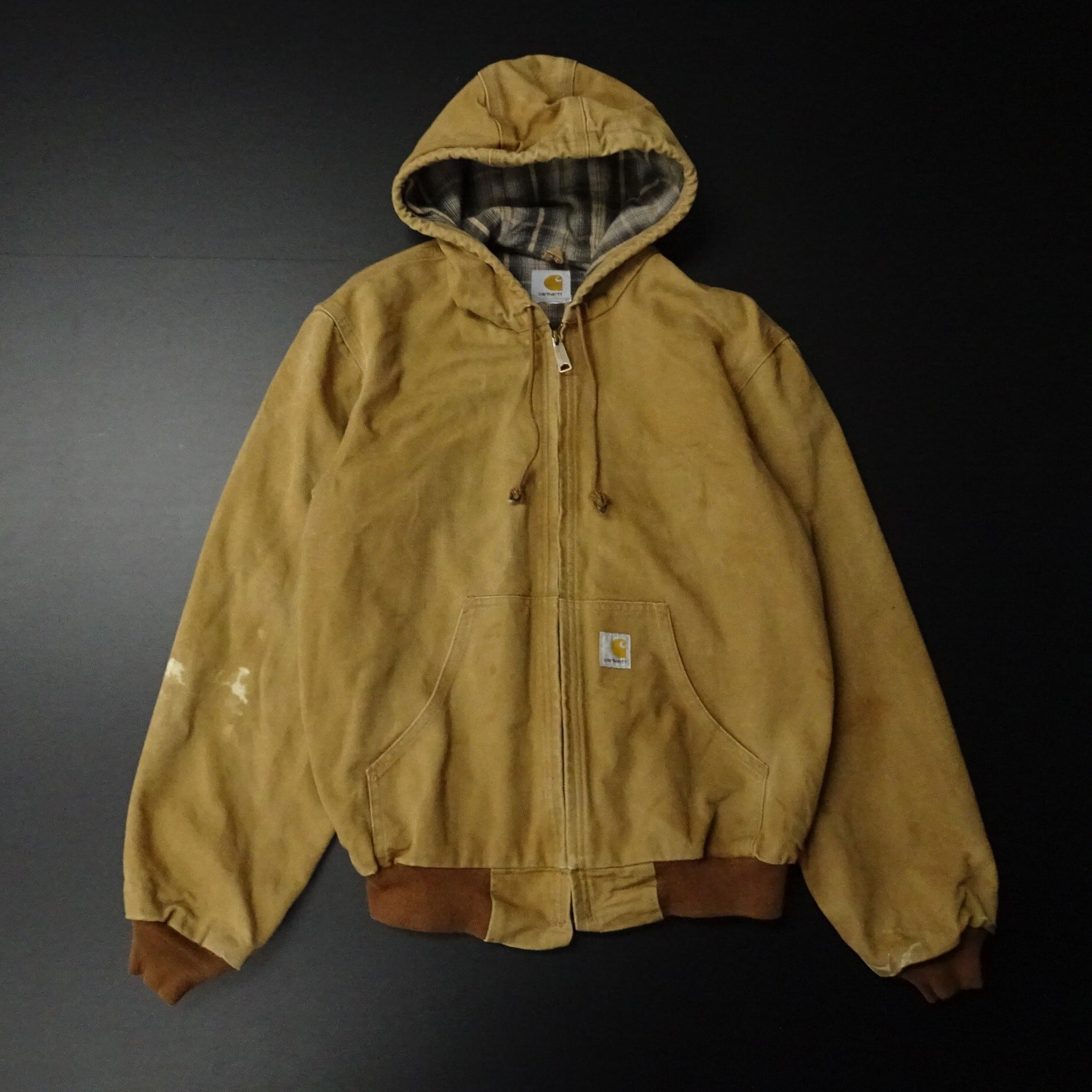 00s Carhartt カーハート アクティブジャケット パーカー J138 裏地チェック Y2K 00年代 ベージュ系