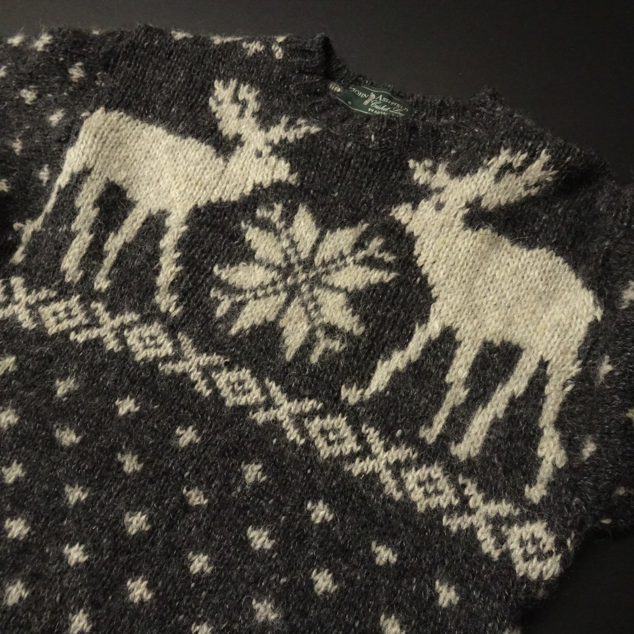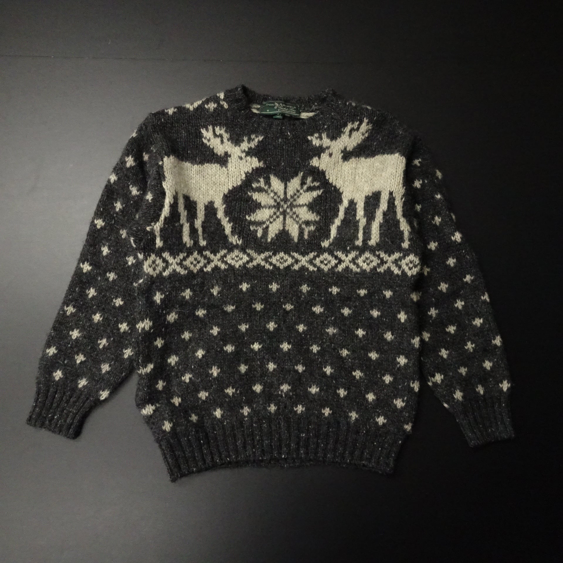 90s- イタリア製 ジョン アッシュフィールド 長袖セーター トナカイ スノーフレーク 90年代~ チャコールグレー