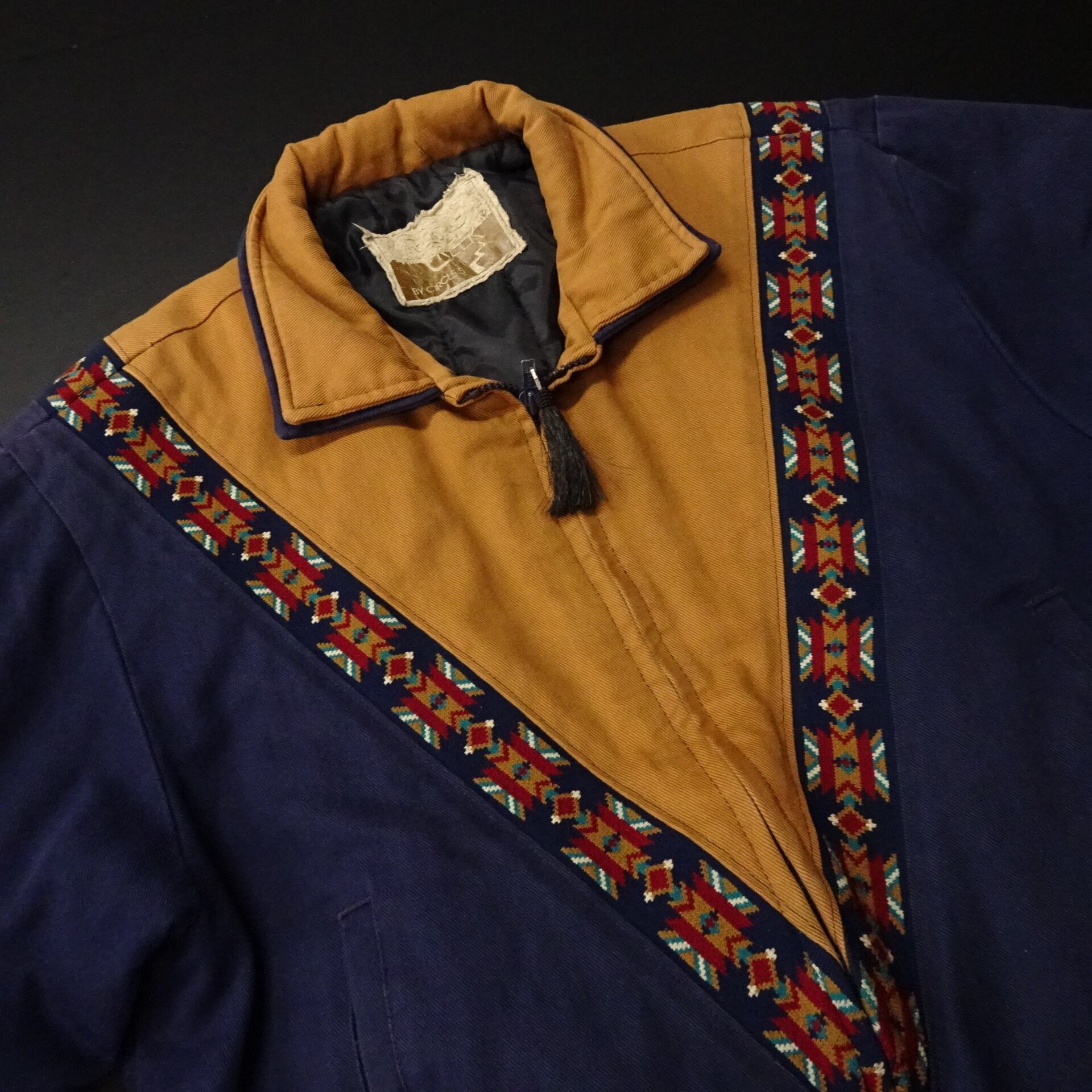 80s- USA CLIPPLE CREEK クリップルクリーク ジップジャケット ネイティブ柄 短丈 80年代~ ネイビー