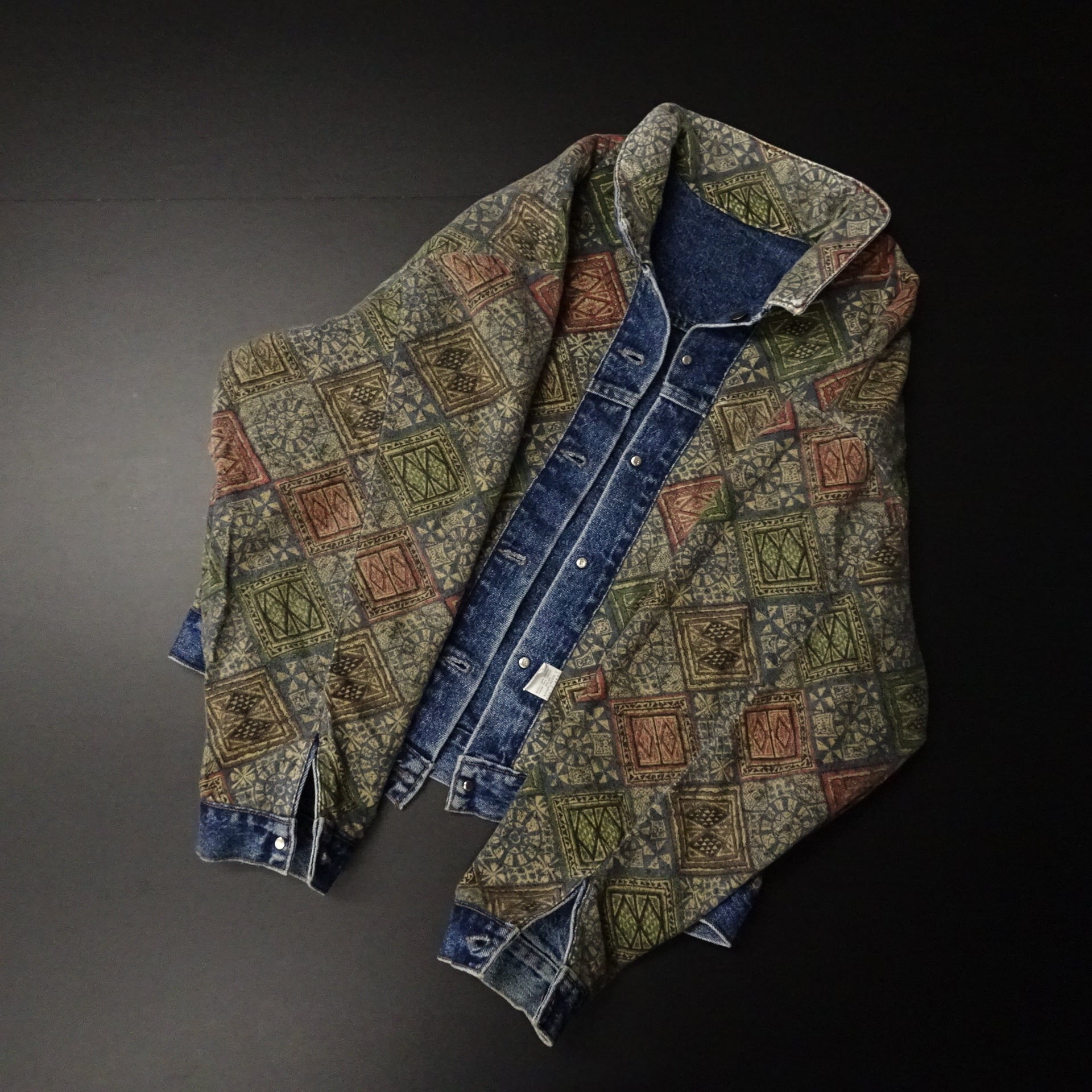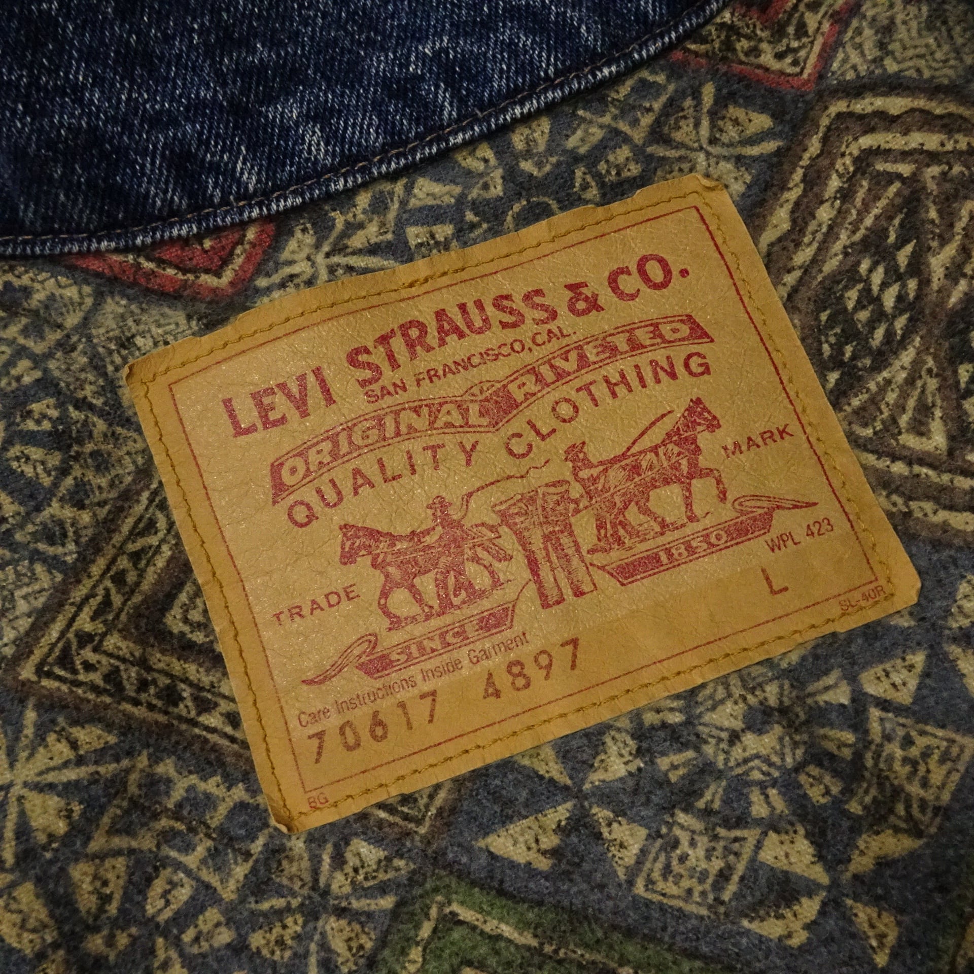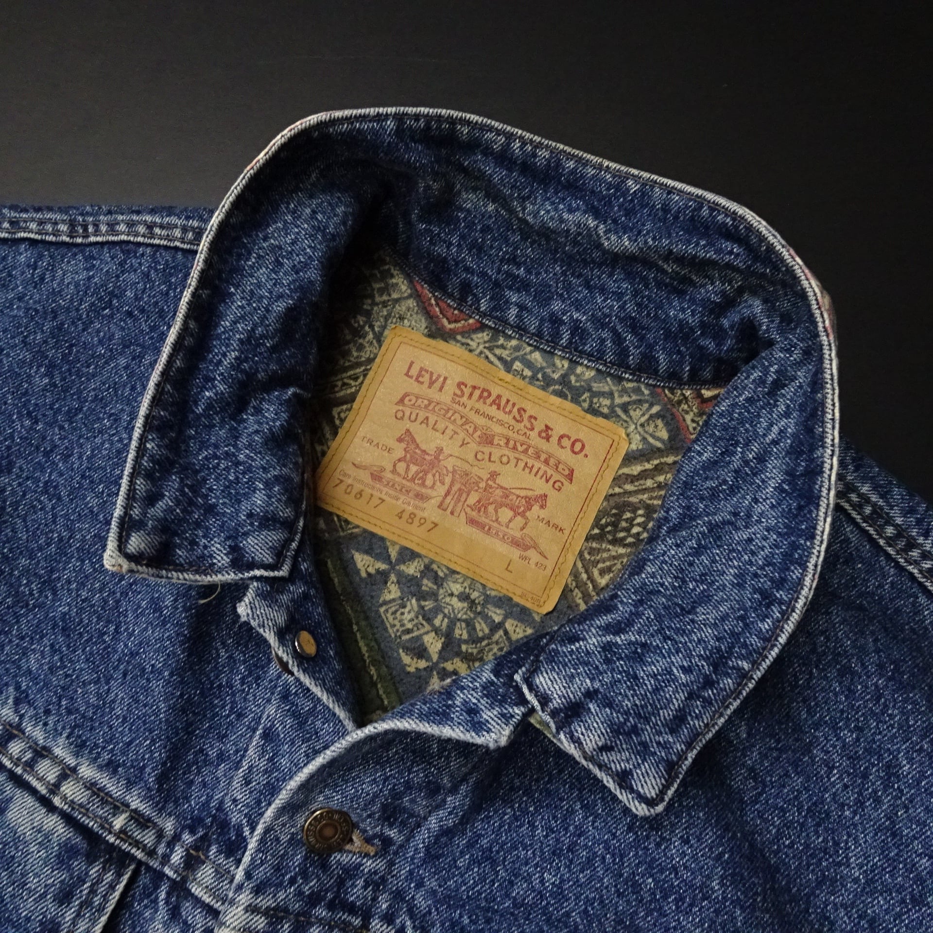 90s USA製 Levi's リーバイス 70617 デニムジャケット 527工場 ブランケット エスニック 1991年 トラッカータイプ 90年代 ブルー
