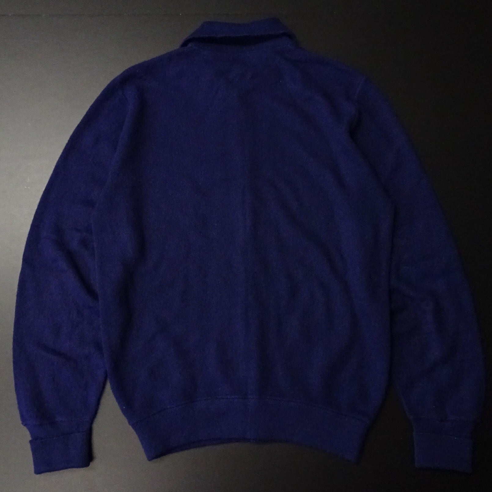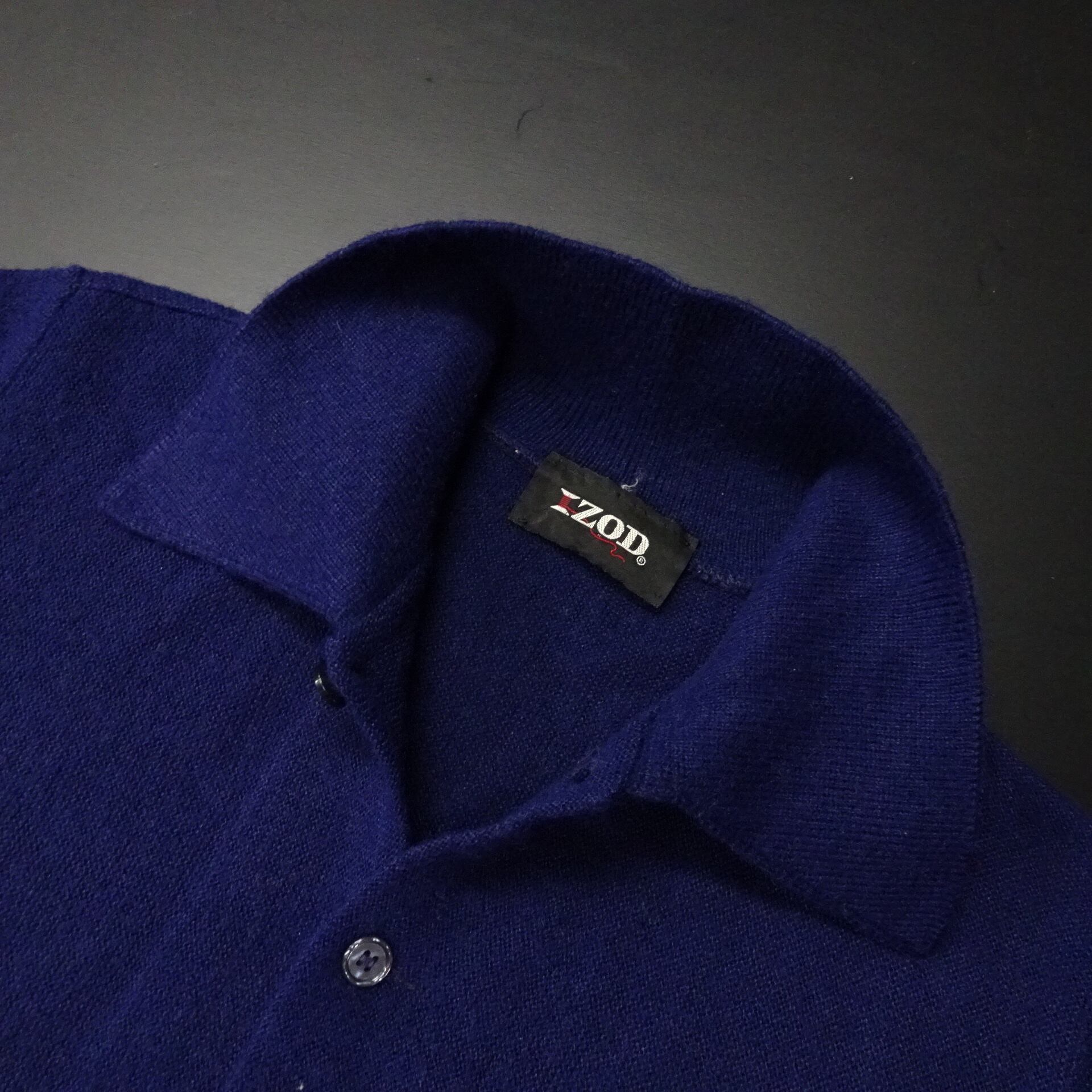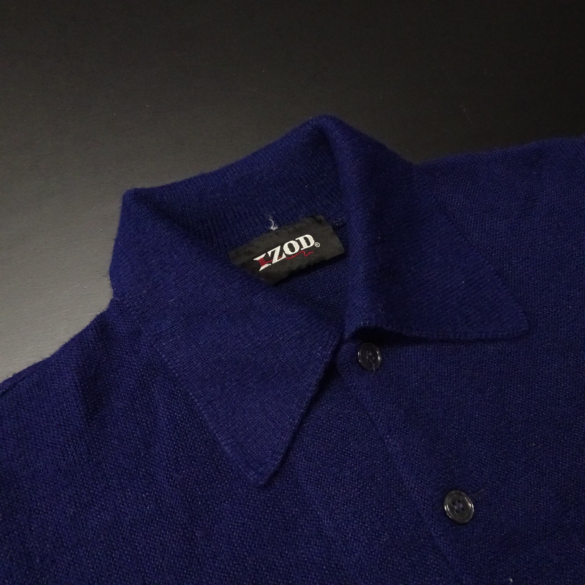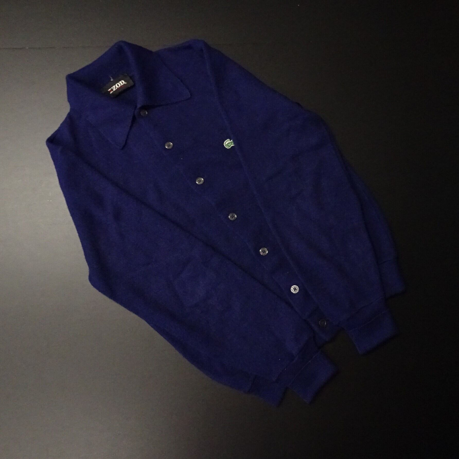 70s- IZOD アイゾッド 長袖カーディガン 襟付き 糸巻タグ ラコステ 希少 70年代~ ネイビー